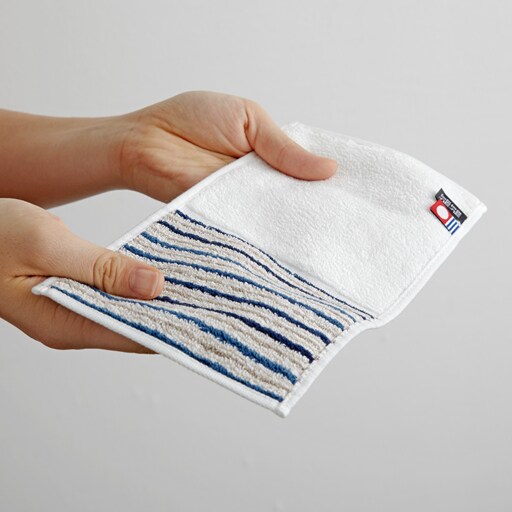 織物とタオルの新しいコラボレーション「GOLDPEARL×SHIMASHIMA」。「SHIMA-SHIMA」ブランドのデザインも手掛ける染織家・築城則子氏監修の下、今治タオルの優れた技術で経糸を高密度で織り上げ、小倉織の世界をタオルで表現しました。センターに折り目のある二つ折りでポケットに入れてもかさばらず、厚手生地で汗も水分もしっかり吸収してくれます。ギフトボックス入りで贈り物にもおすすめ。立体的な縞模様と上質な肌ざわりのコラボレーションをお楽しみください。