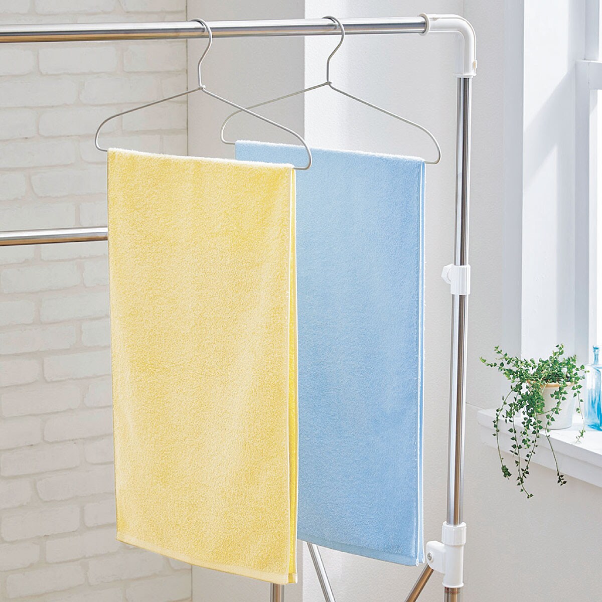 ハンガーバスタオルサイズは、ハンガーに干せて部屋干しにも便利!
