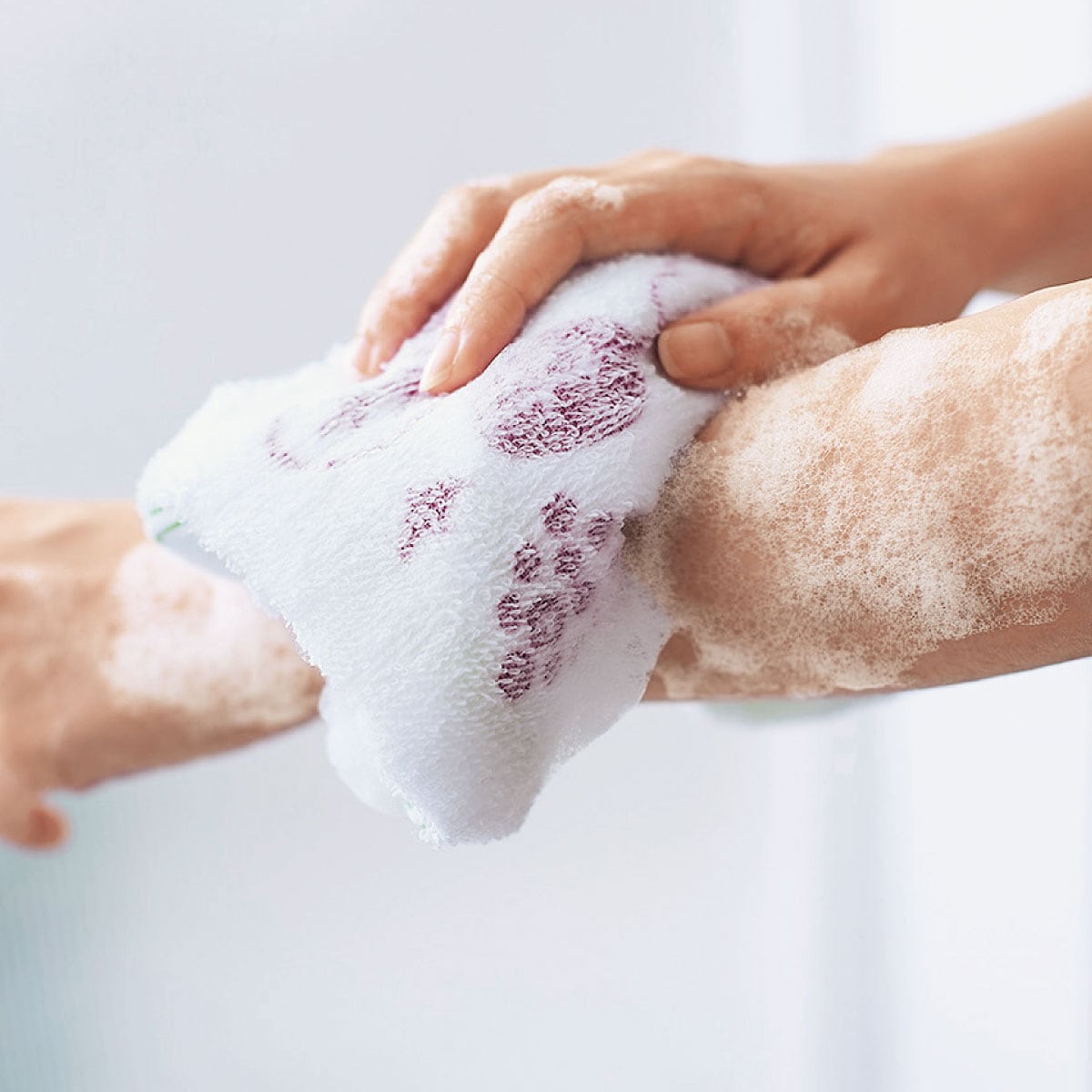 絞りやすくてしっかりした生地なので、力を入れずさっぱりと洗えます。