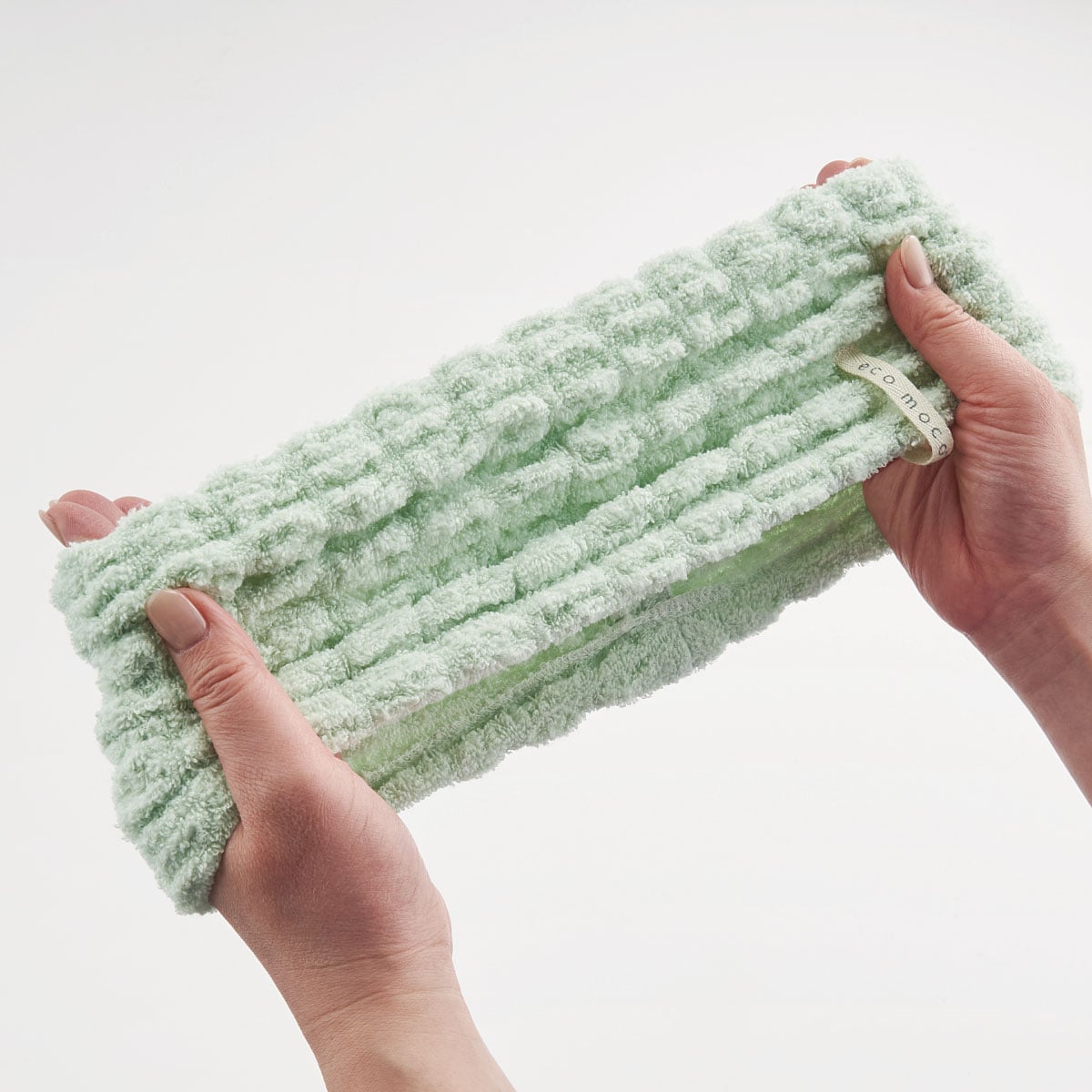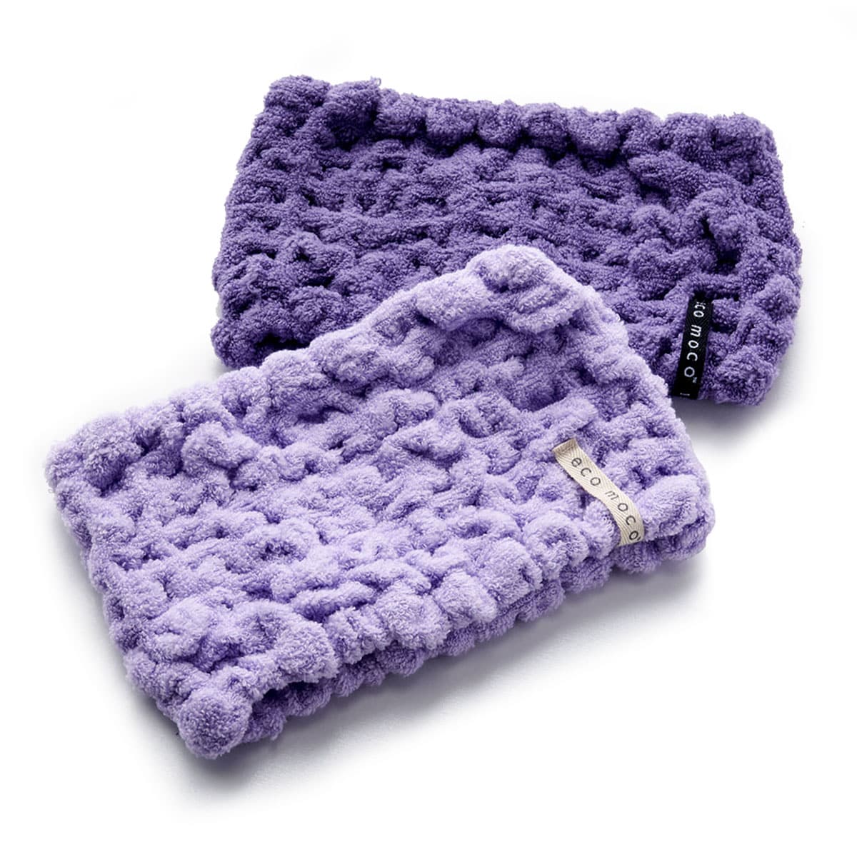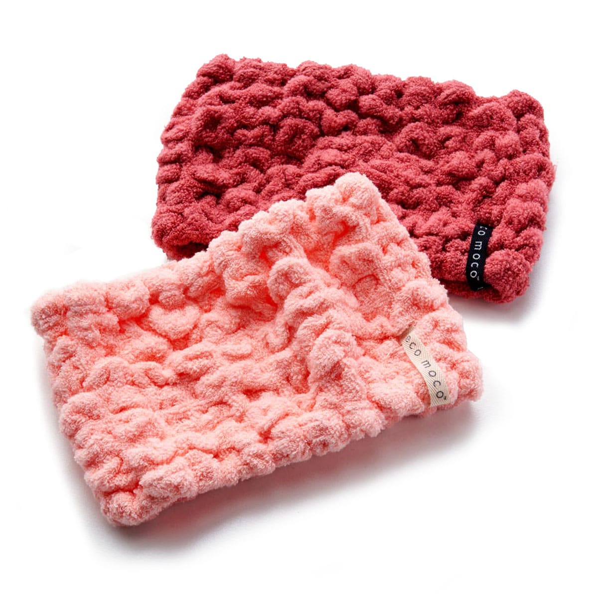 広幅タイプですっぽり髪を包んでくれる、エコモコへアバンドです。タテ糸とヨコ糸に伸縮性のある糸を織り込み、熱処理して伸縮させることで、モコモコタッチのユニークな形状に。ソフトな風合いとふんわり心地よい肌ざわりで、吸水性もバッチリです。洗顔やお風呂上がりはもちろん、ジムやプールの後にもおすすめ。おしゃれなニュアンスカラーをご用意しました。洗い替えにも便利な色違いの2枚組でお届けします。