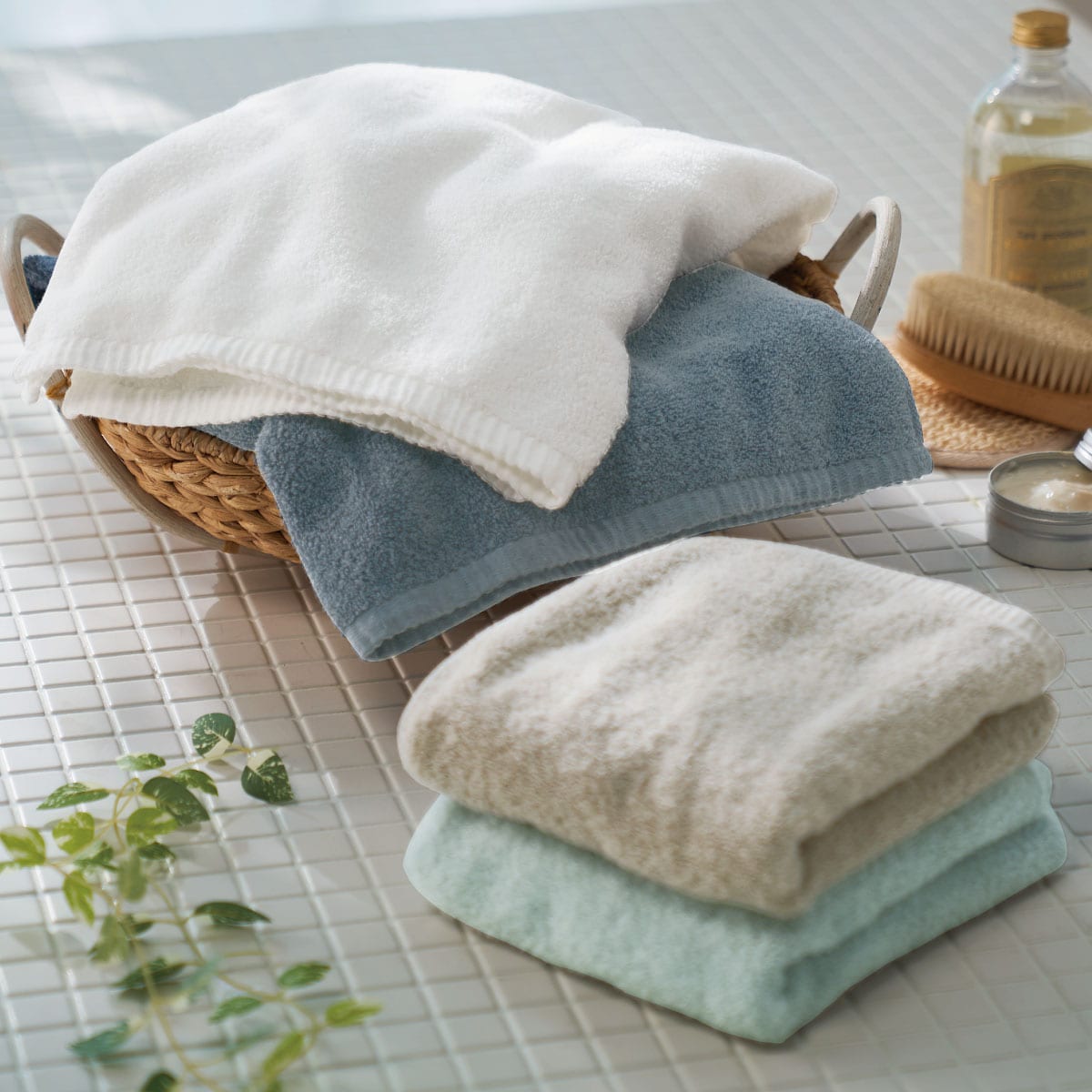 高品質な今治タオルを普段使いに。甘撚りの糸を使いふっくら優しい肌ざわりに仕上げています。