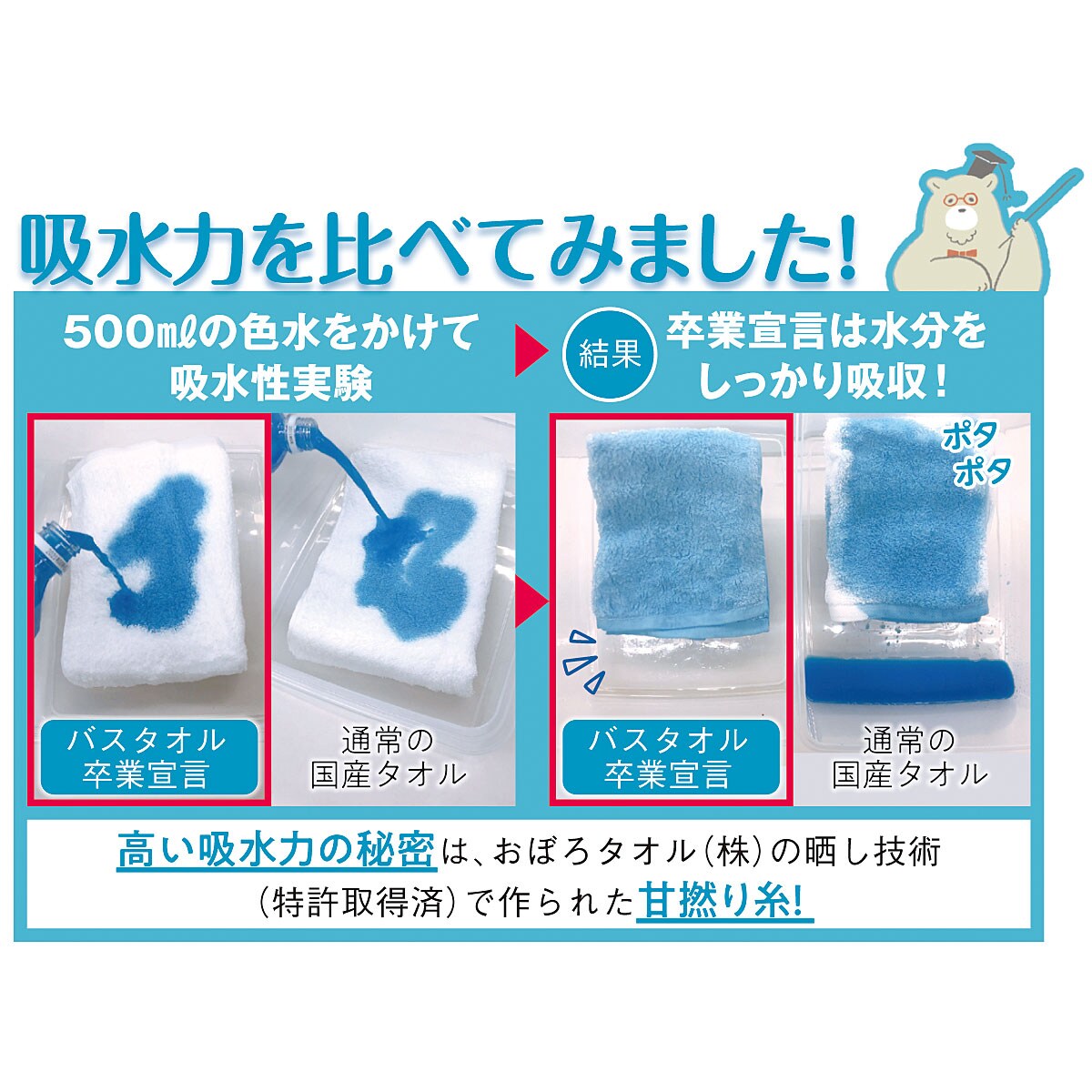 国産タオルの老舗メーカー「おぼろタオル」の晒し技術で作られた甘撚り糸が吸水力の秘密。