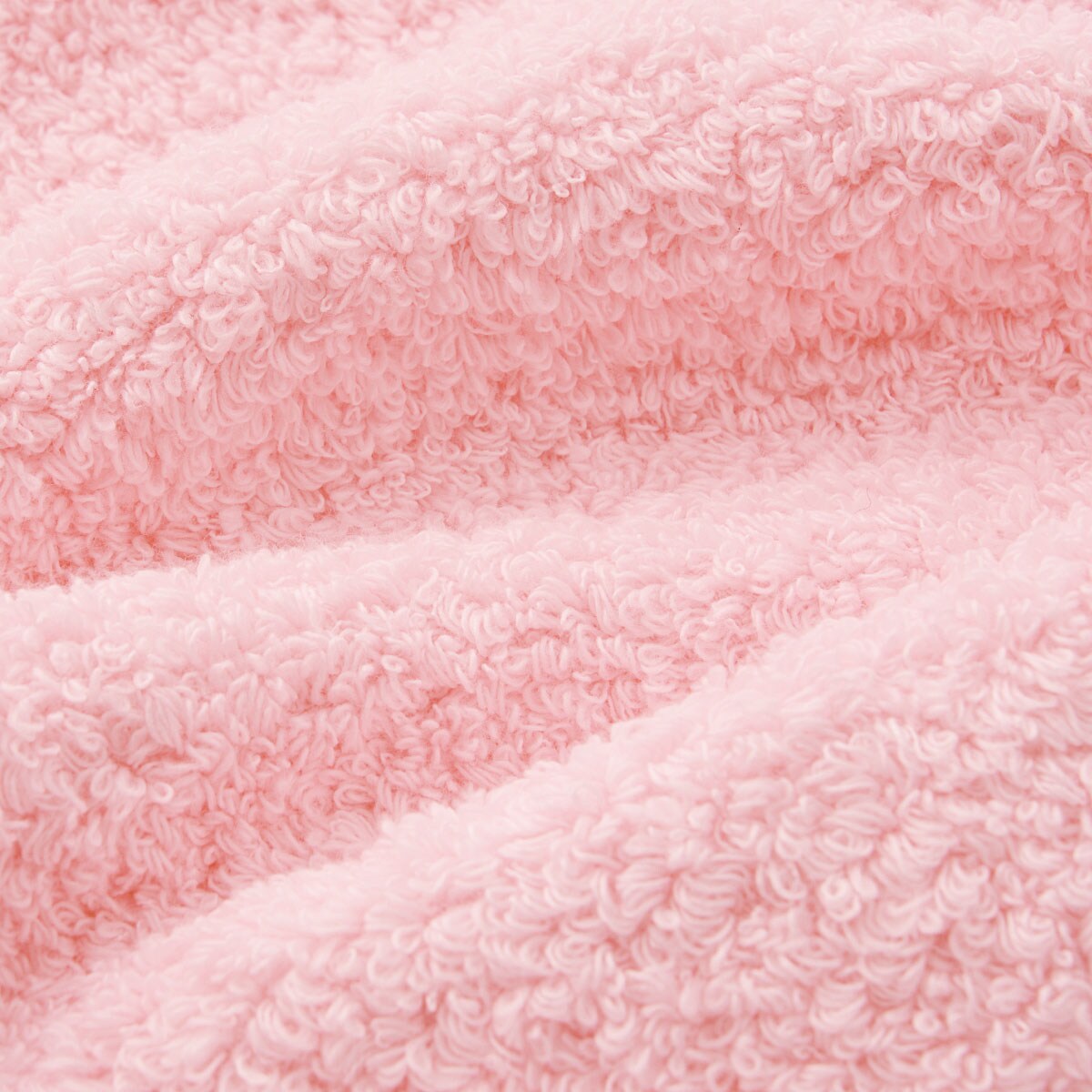 生地拡大(ソフトピンク)やや太めのパイルが、お風呂上がりの濡れた髪やカラダをしっかり拭きとります。