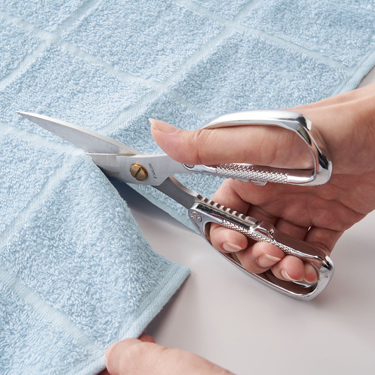 格子ラインに合わせて好みの大きさにカットすればほつれにくく、お掃除クロスやフローリングワイパーなどに再利用ができます。