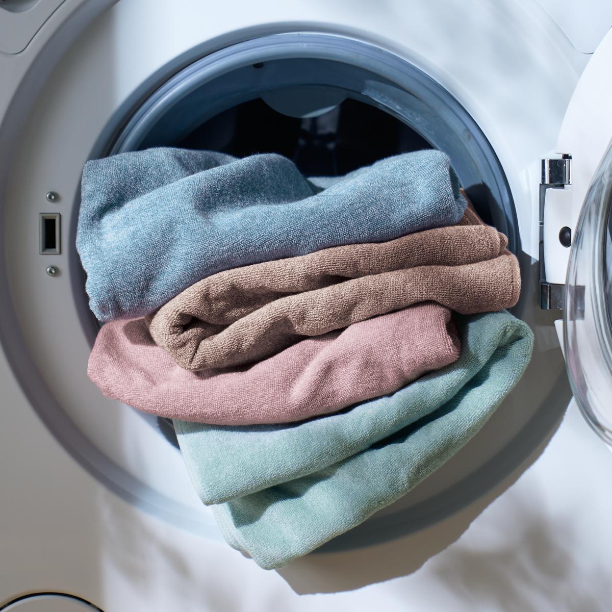 「洗濯を繰り返すとタオルがゴワゴワに…」そんなお悩みを解消! 細めの糸2本を撚り合わせた独自のパイルを使うことで、ふんわりした風合いが長持ちします。パイルの抜けや乱れを抑える密な織り設計で、繰り返しの洗濯やドラム式乾燥にも負けないふんわり感が続きます。