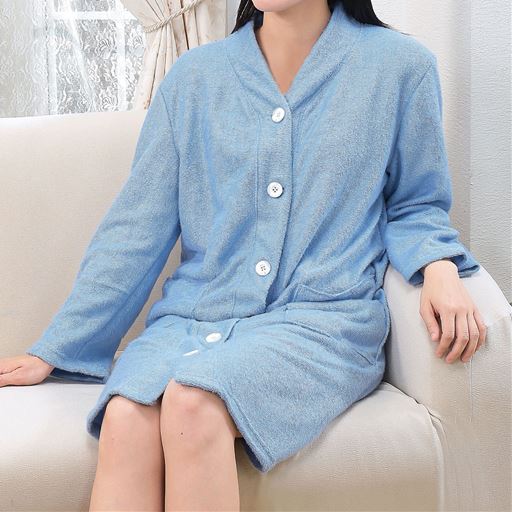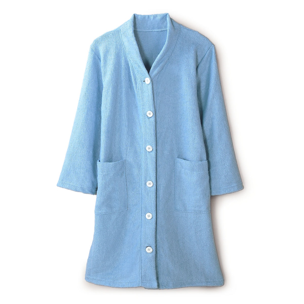 ブルー湯上がりにサッと羽織れて気持ちいい! 前開きタオルバスチュニックです。