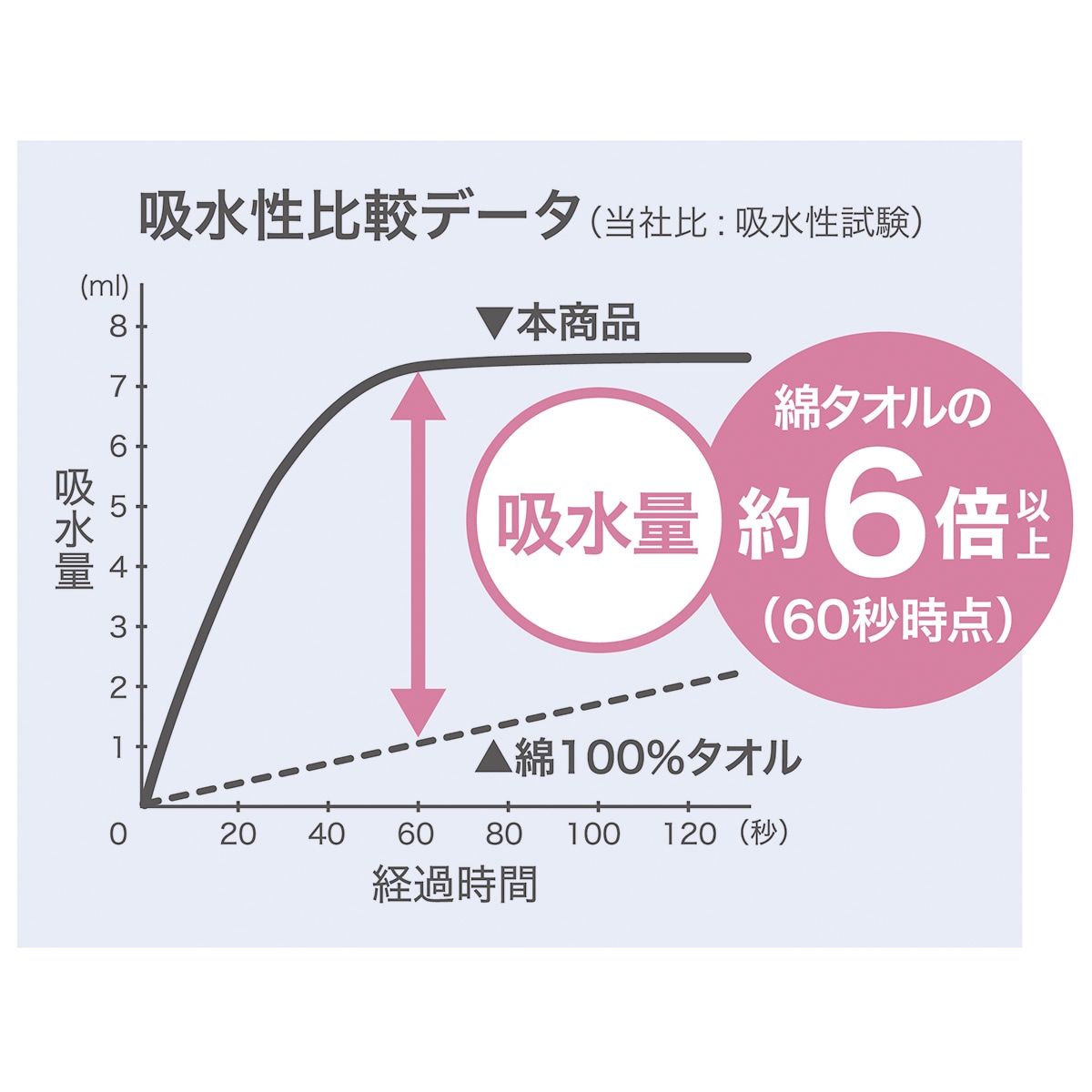 吸水量は綿タオルの約6倍以上!