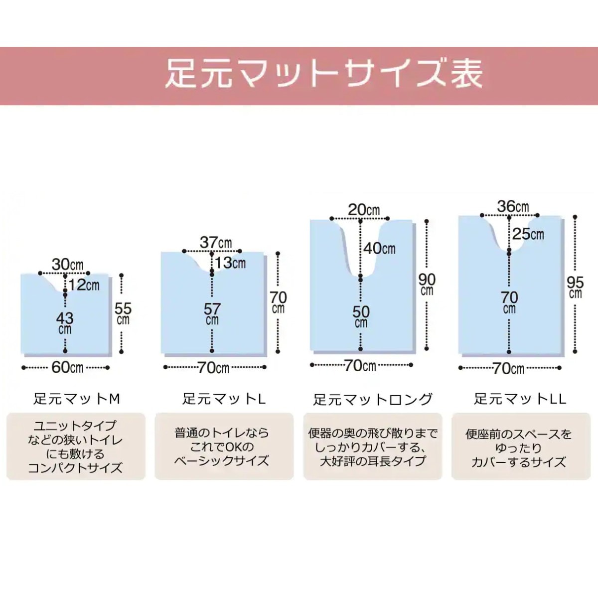 ホワイト系 ロングマット(横70×縦90cm)ロングマットは横までしっかり汚れをカバー!