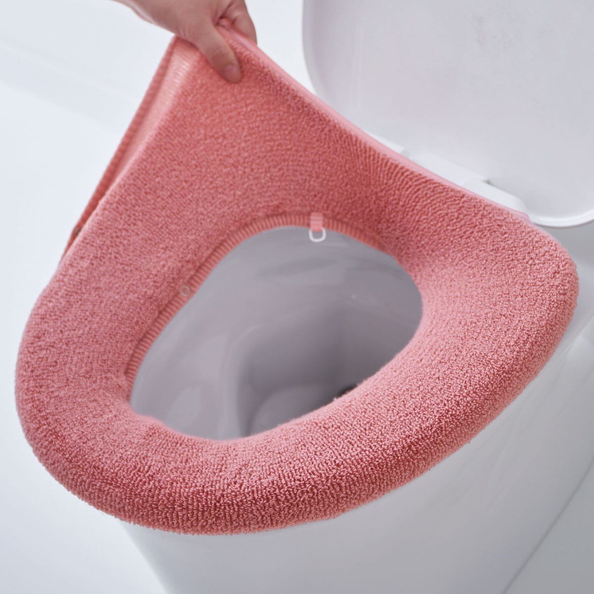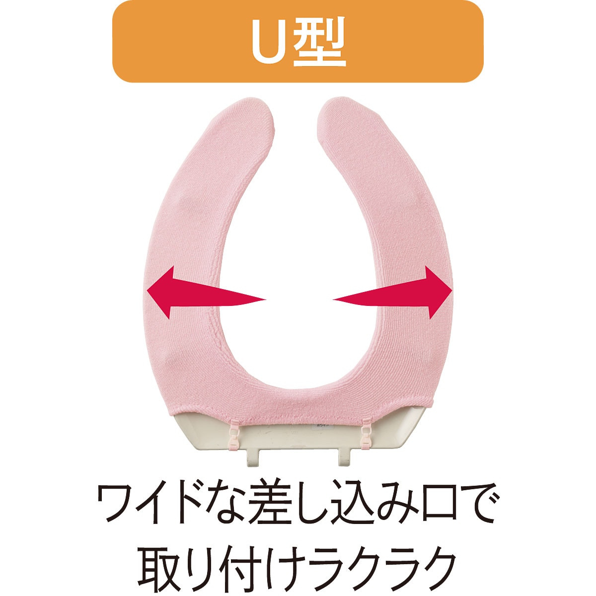 洗浄便座型・U型・O型それぞれのタイプに対応できる、のびのび便座カバーです。U型はワイドな差し込み口でらくらく装着。O型はホックとフック付きで簡単に取り外しできます。洗浄便座型はアジャストバーとフックで見た目もすっきり。古めのトイレの印象を変えたい方にもおすすめです。ご家庭の洗濯機で気軽に洗えるので、いつも清潔にお使いいただけます。