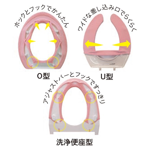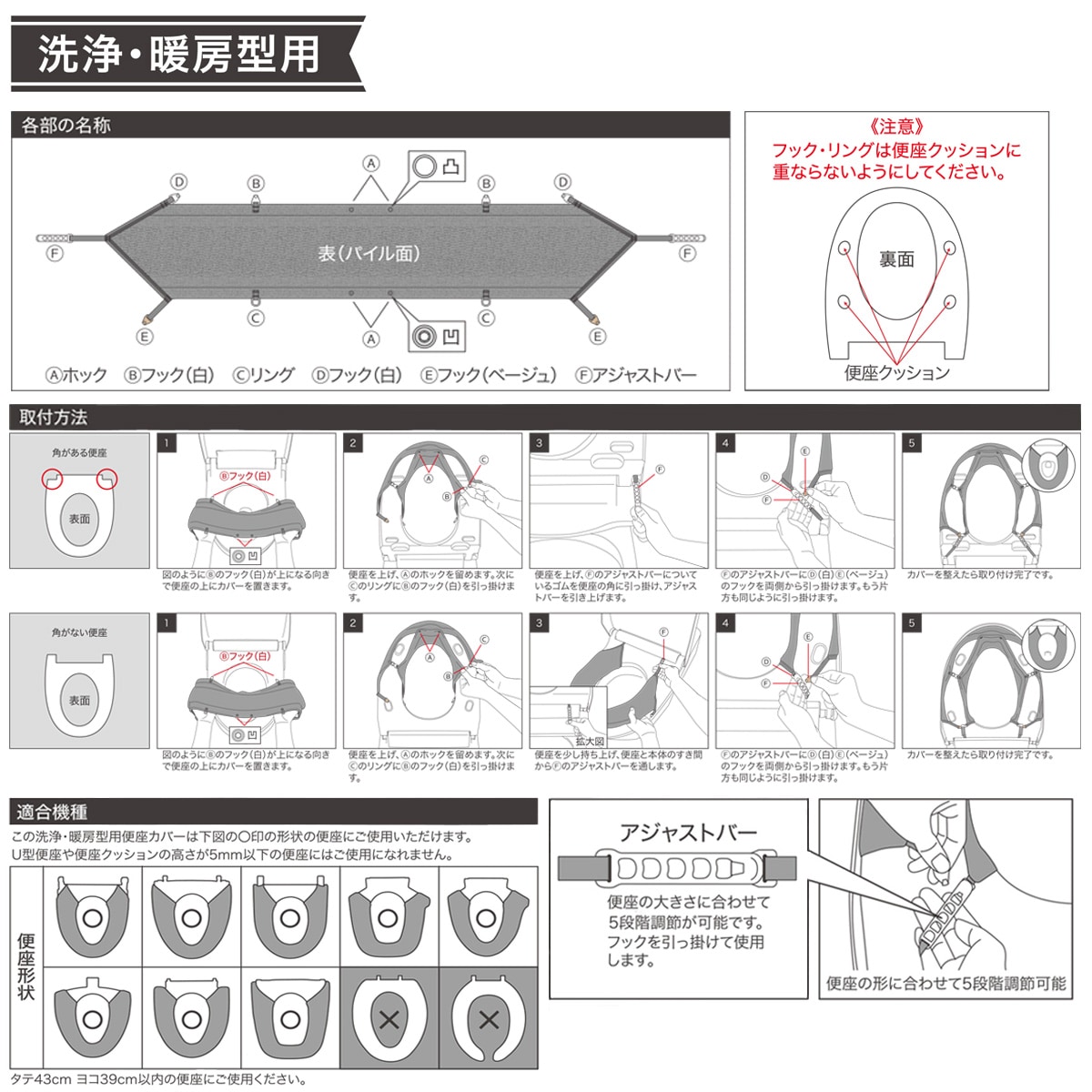 ■[適応サイズ(約cm)]U型/横37×縦44まで O型/横37×縦44まで 洗浄便座型/横39×縦43まで