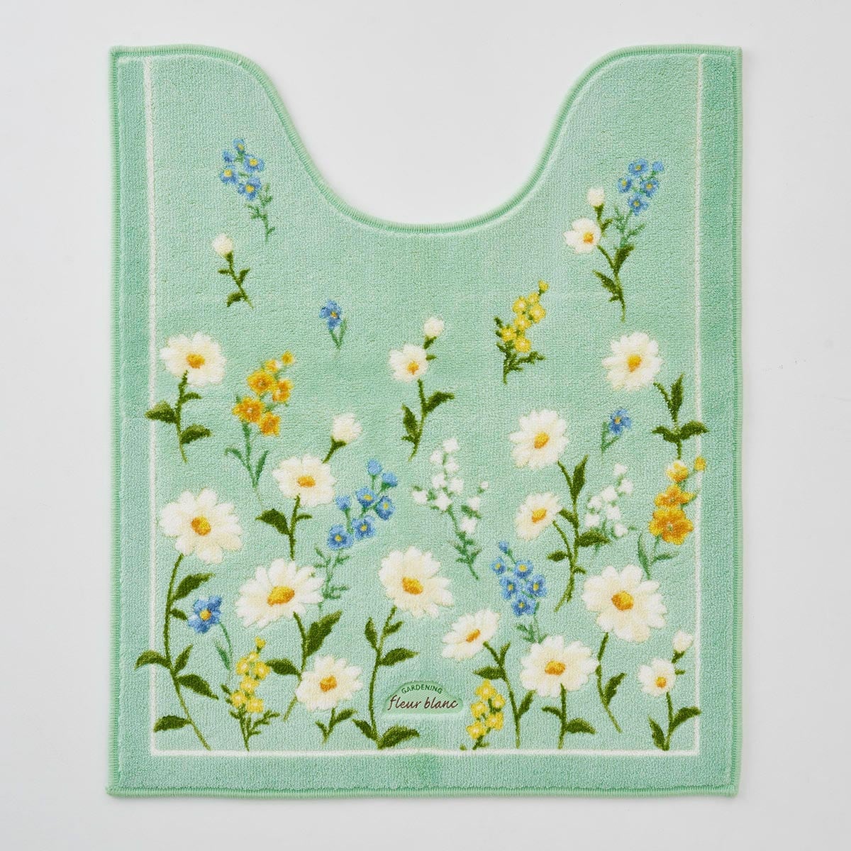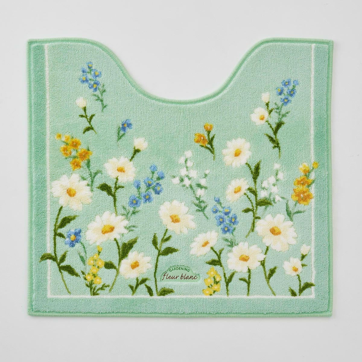 グリーン系 トイレマットLベースカラーに咲くマーガレットが上品でかわいい。※商品はトイレマットです。