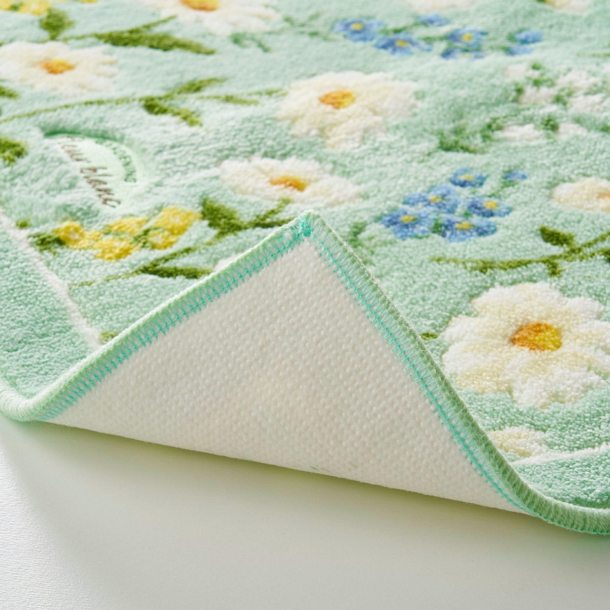 フルールブランは、フランス語で「白い花」を意味します。落ち着いた印象のベースカラーに咲くマーガレットが、トイレの空間をパッと華やかに。厚さ約8mmのふっくらとした程よい踏み心地です。マットの裏面はすべりにくい加工でズレにくく、洗濯ネットに入れて丸洗い可能なので、清潔にお使いいただけます。フルールブランのトータルコーディネートで揃えるのもおすすめです。