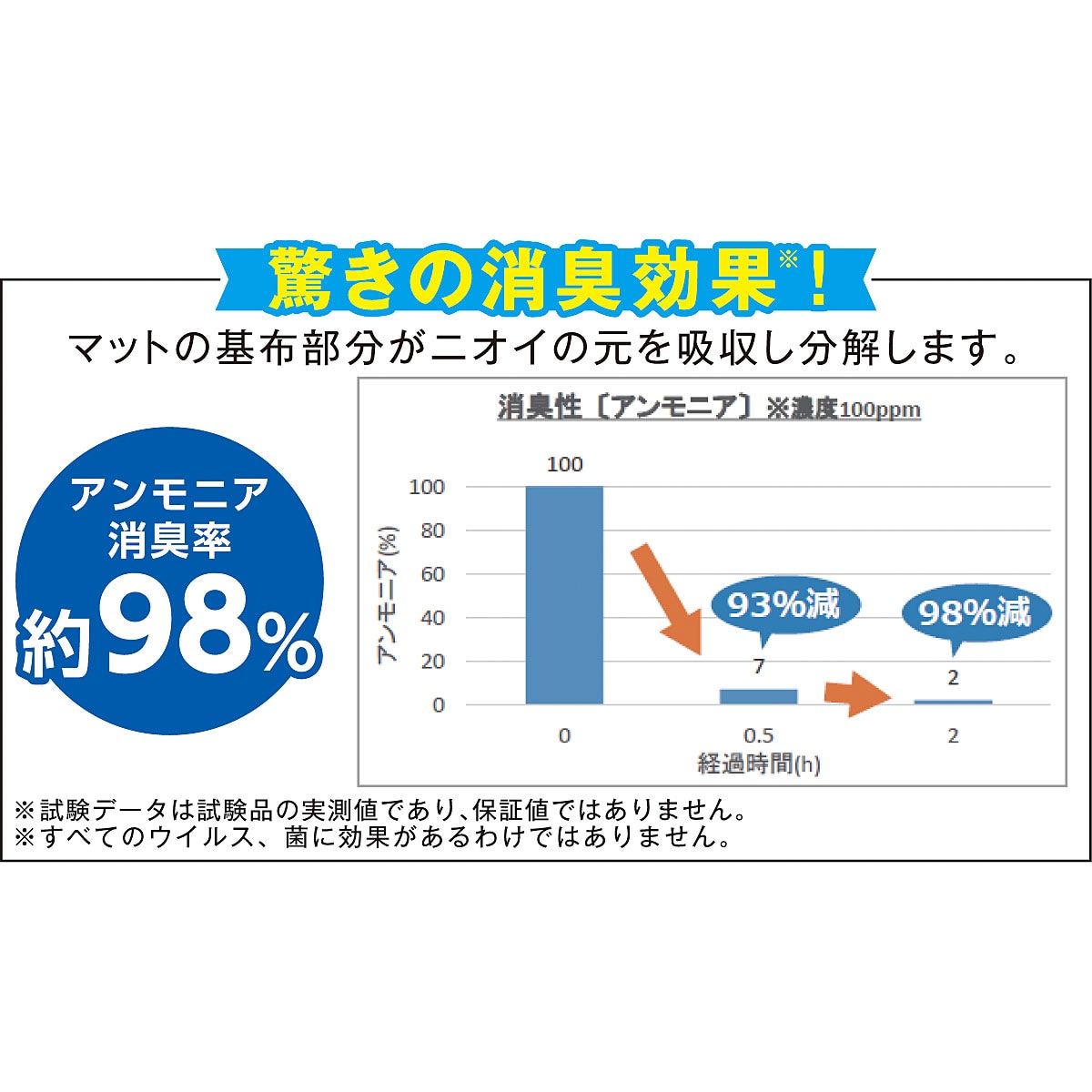 驚きの消臭効果! マットの基布部分がニオイの元を吸収・分解。洗濯後も効果が続きます。