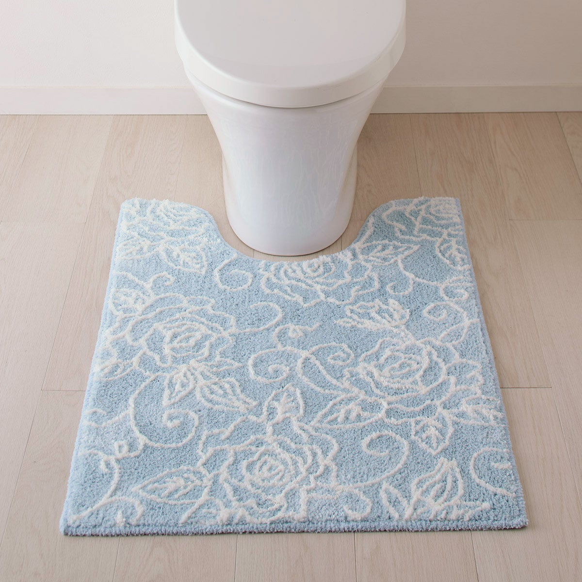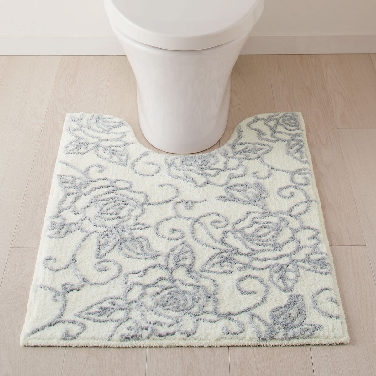 上品で愛らしいローズパターンがエレガントなトイレマットです。柔らかくふわふわとした贅沢な素材感が心地よい肌ざわり。裏面には滑りにくい加工が施されているので、安心してご使用いただけます。洗濯機で洗えるので、お手入れ簡単なのも嬉しいポイント。