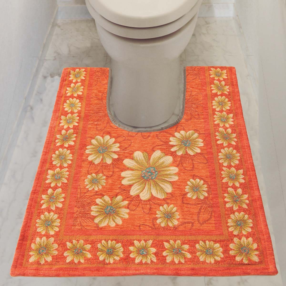 オレンジ 90×65cm鮮やかな花柄が空間を明るく彩る、イタリア製のトイレマットです。