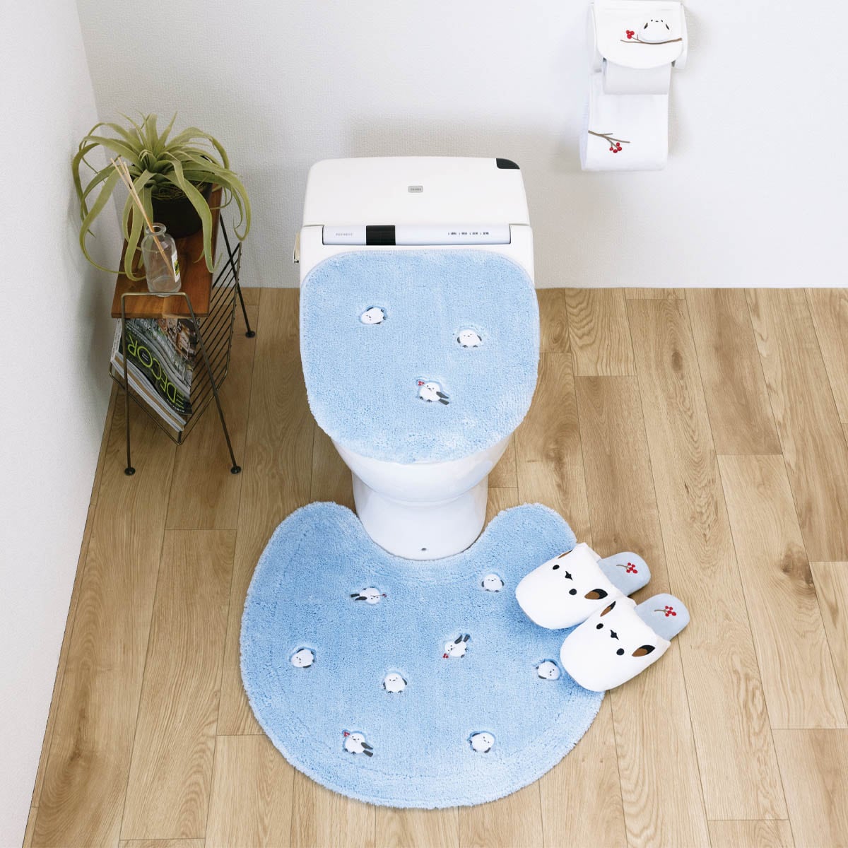 ふわふわの可愛らしい小鳥「シマエナガ」のトイレマットとフタカバーです。シリーズで揃えてほっこり心が癒される空間へ変えてみませんか♪