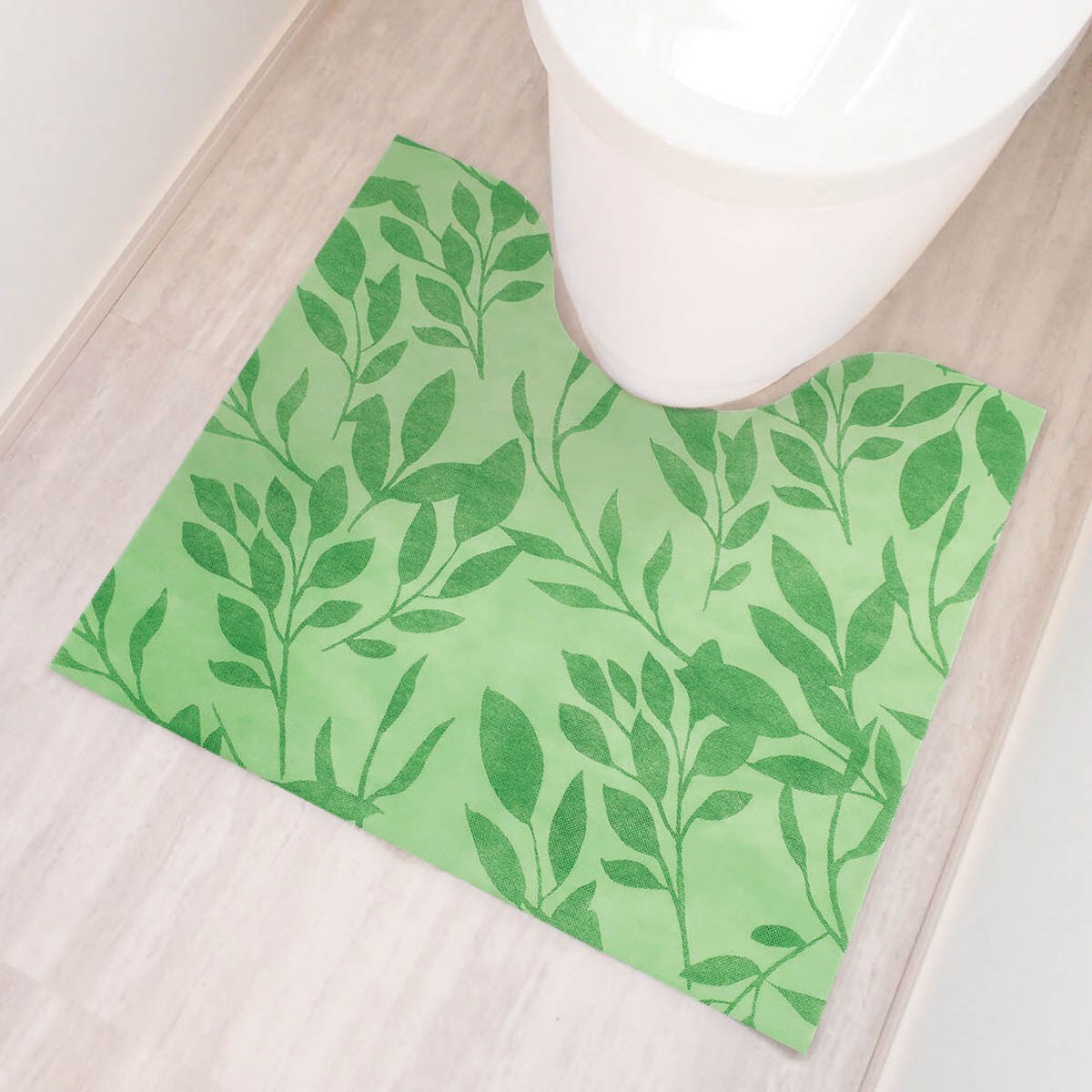 汚れたらポイッと捨てるだけ。洗濯不要で手間いらずのトイレマット。グリーン系(リーフ)