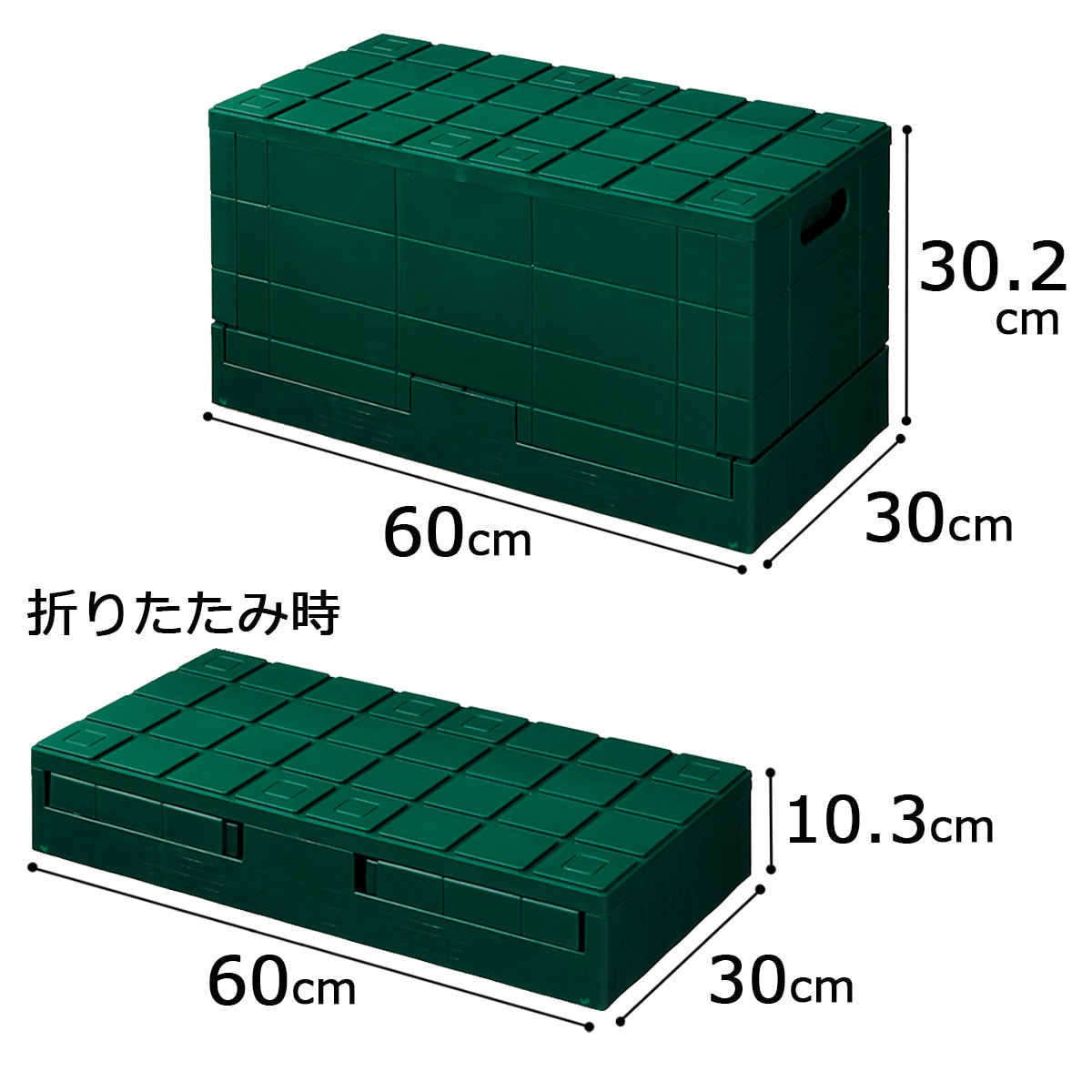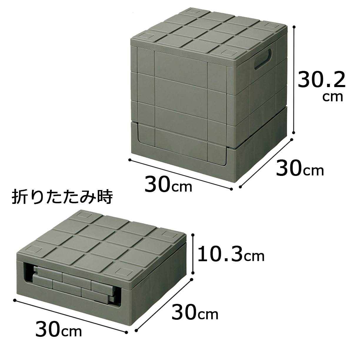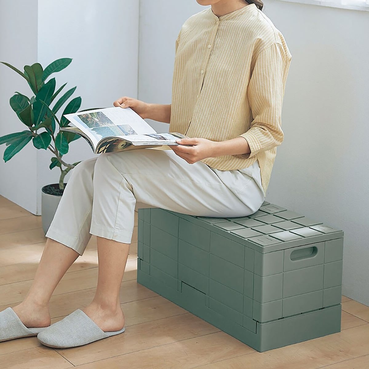 工夫次第で使い方いろいろ! ブロック型が見た目にもおしゃれなグリッドコンテナーです。天板耐荷重は約100kgで、ベンチ代わりにしてもOK。重たいものも乗せられます。フタと底の凹凸がぴったりフィットするので、重ねても安定感バッチリ。非常食のストックやお子様のおもちゃ箱、ガーデニング用品入れなど使い方はあなた次第! リビングなど見える場所に置いてもインテリアの邪魔になりません。取っ手付きで持ち運びもラクラク。使わないときはコンパクトに折りたためます。