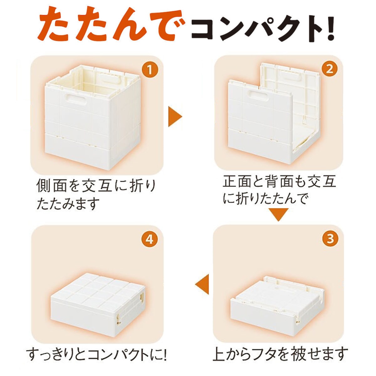 ホワイト B (スタンダード)重ねてスッキリ、たたんでコンパクト! 折りたたみ式のグリッドコンテナーです。