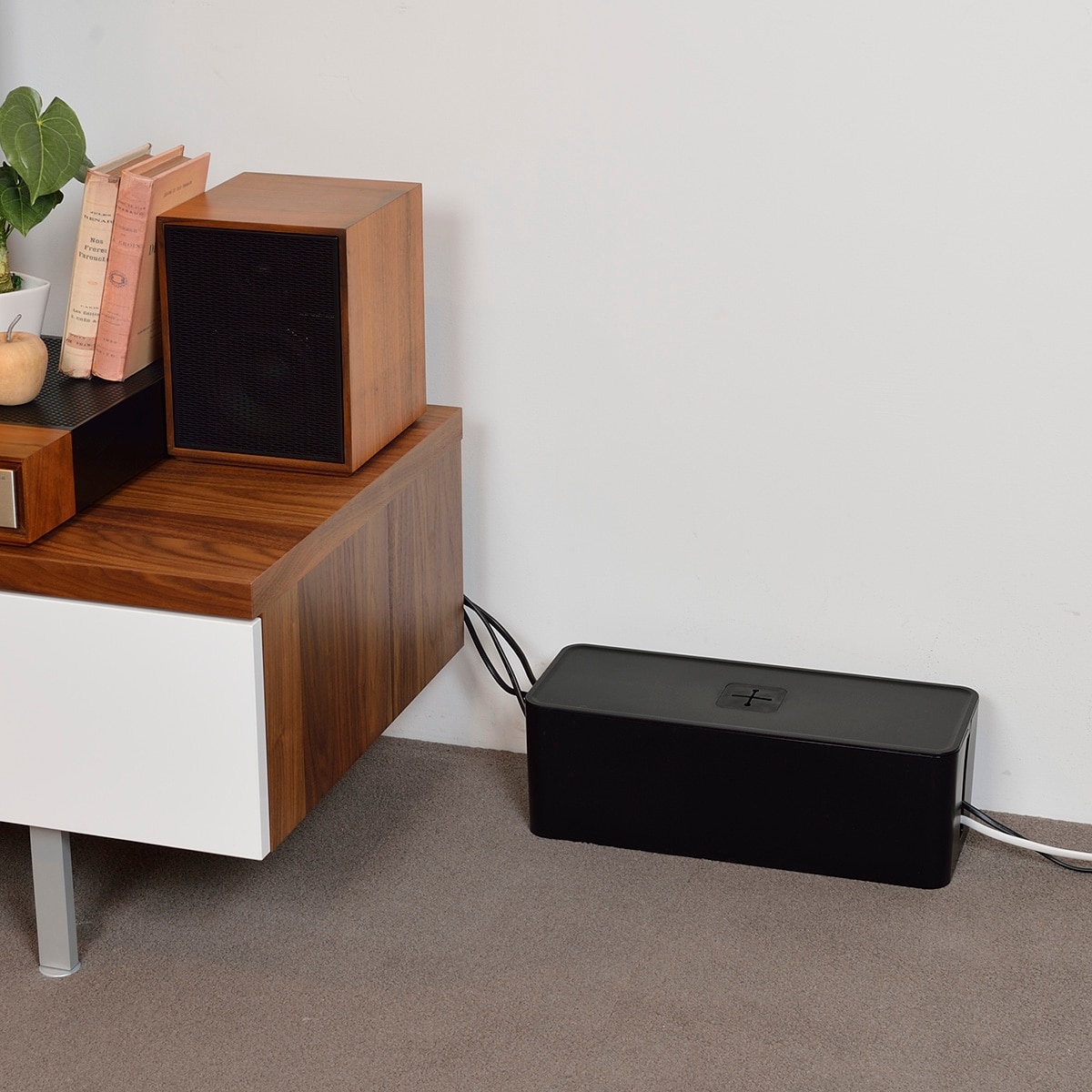 ブラックゴチャつくコンセントを収納できるケーブルボックスです。
