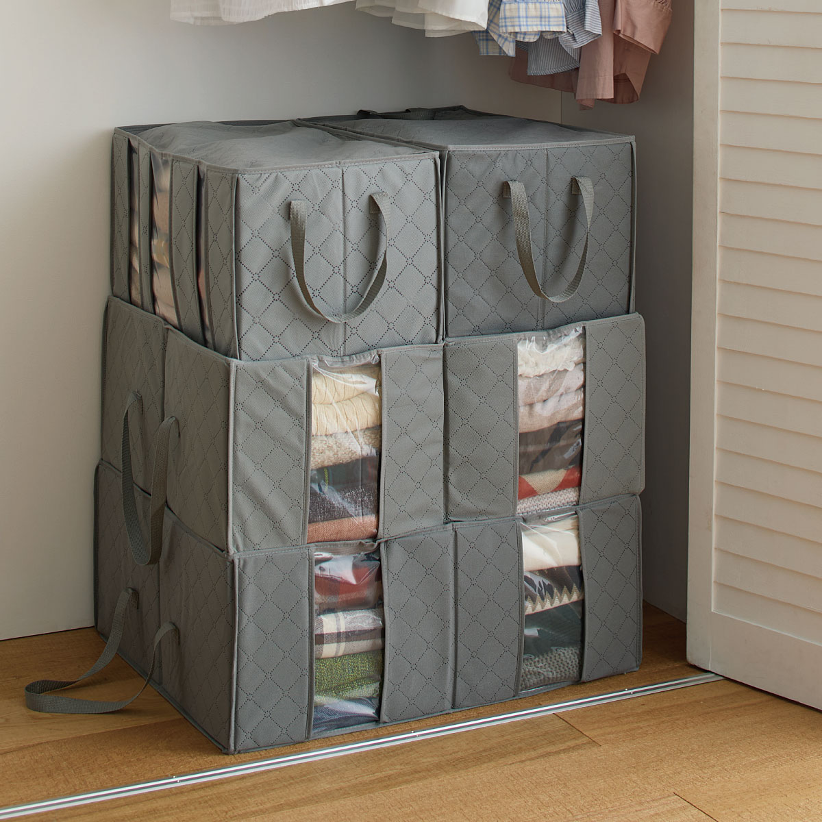 「透明窓」で迷子ゼロ! 竹炭衣類整理袋です。