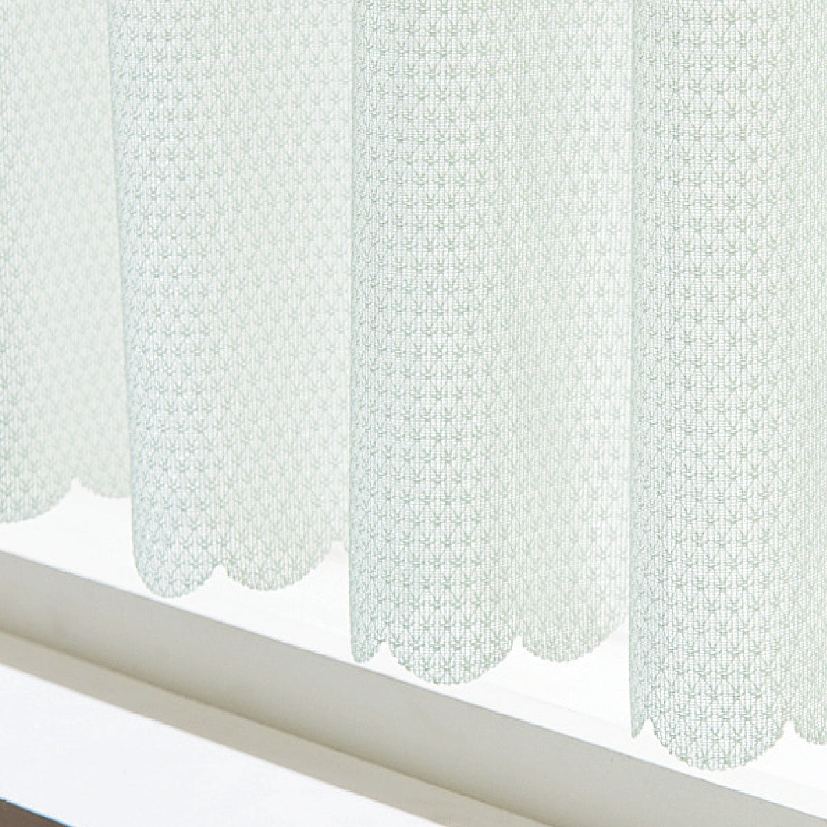 定番人気レースカーテン(CP-295)の生地を使ったカフェカーテンです。ほどよい目隠し効果で昼間の外からの視線を遮り、UVカット機能でお部屋の日焼け防止対策にも。さらに防炎加工付きで、キッチンなどにも安心してお使いいただけます。お部屋の雰囲気に合わせやすい、シンプルな無地調の淡いカラー展開をご用意しました。フラットに使用しても、ドレープをつけて幅調節もOK。ご家庭の洗濯機で気軽に洗えます。