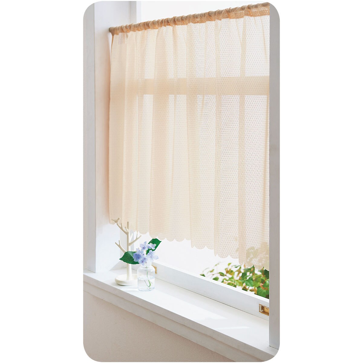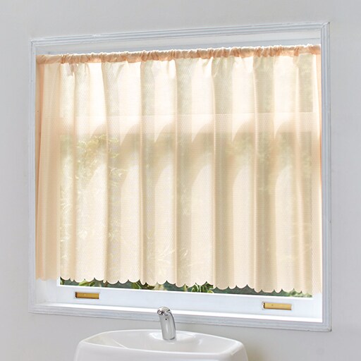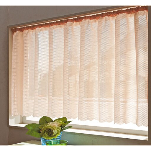 昼間の気になる視線や紫外線をほどよくカットして印象もアップ。シンプルでお部屋のインテリアに合わせやすい、無地調のレースカフェカーテンです。防炎機能付きでキッチンの小窓にもおすすめです。