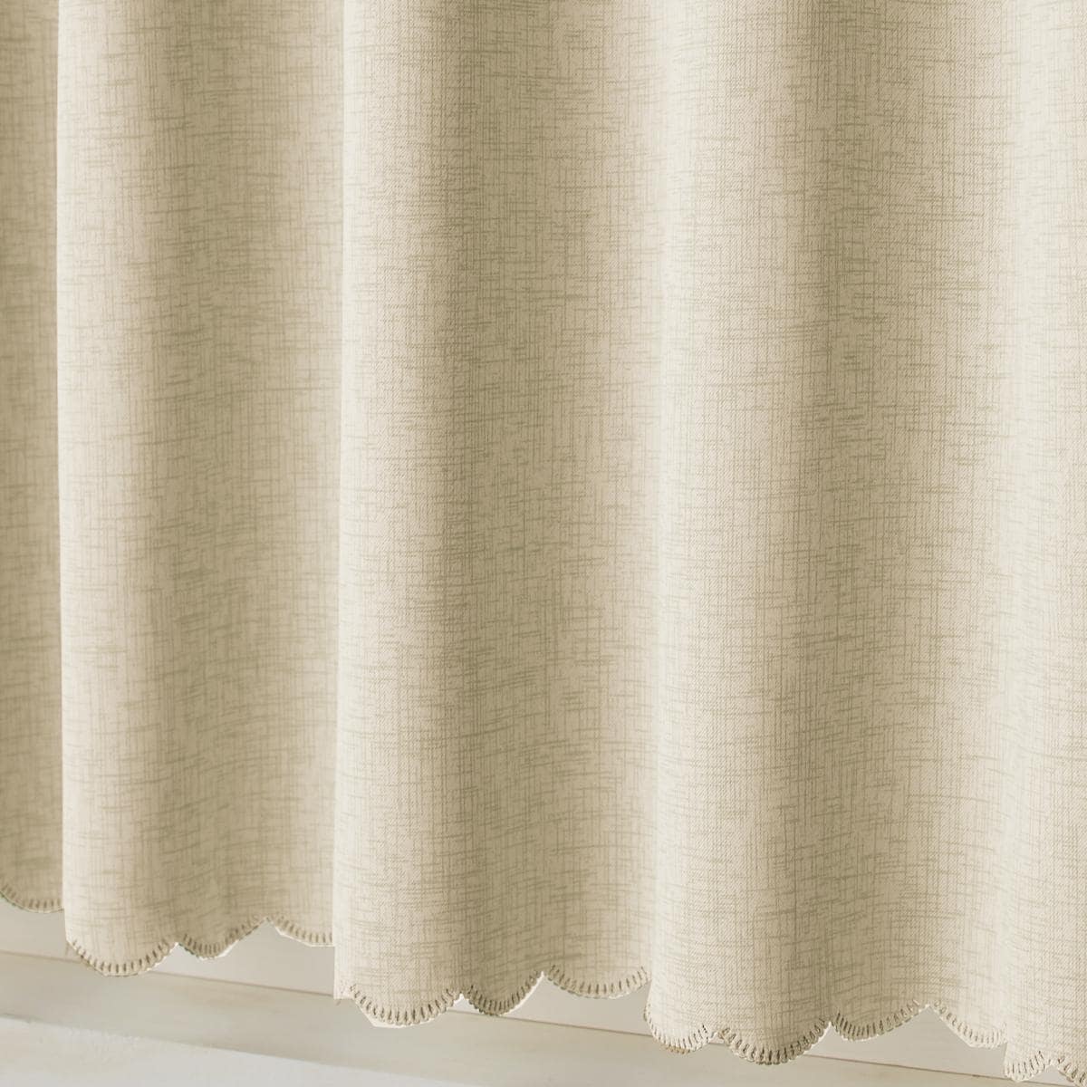 レールがない小窓や縦長の窓などに、つっぱりポールで簡単に掛けられるカフェカーテンです。裾のあしらいが小窓を素敵に演出。1級遮光なので日差しをしっかり遮ります。さらに防炎機能付きで高層マンションやキッチンの窓にもおすすめです。