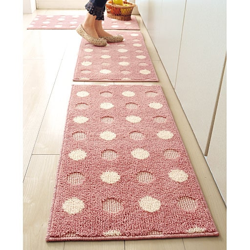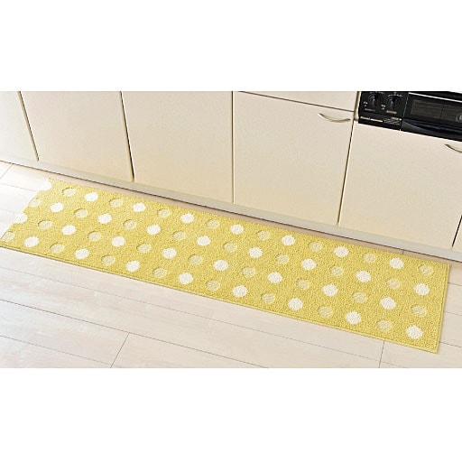 空間のアクセントとしても可愛い! シンプルなドット柄のキッチンマットです。