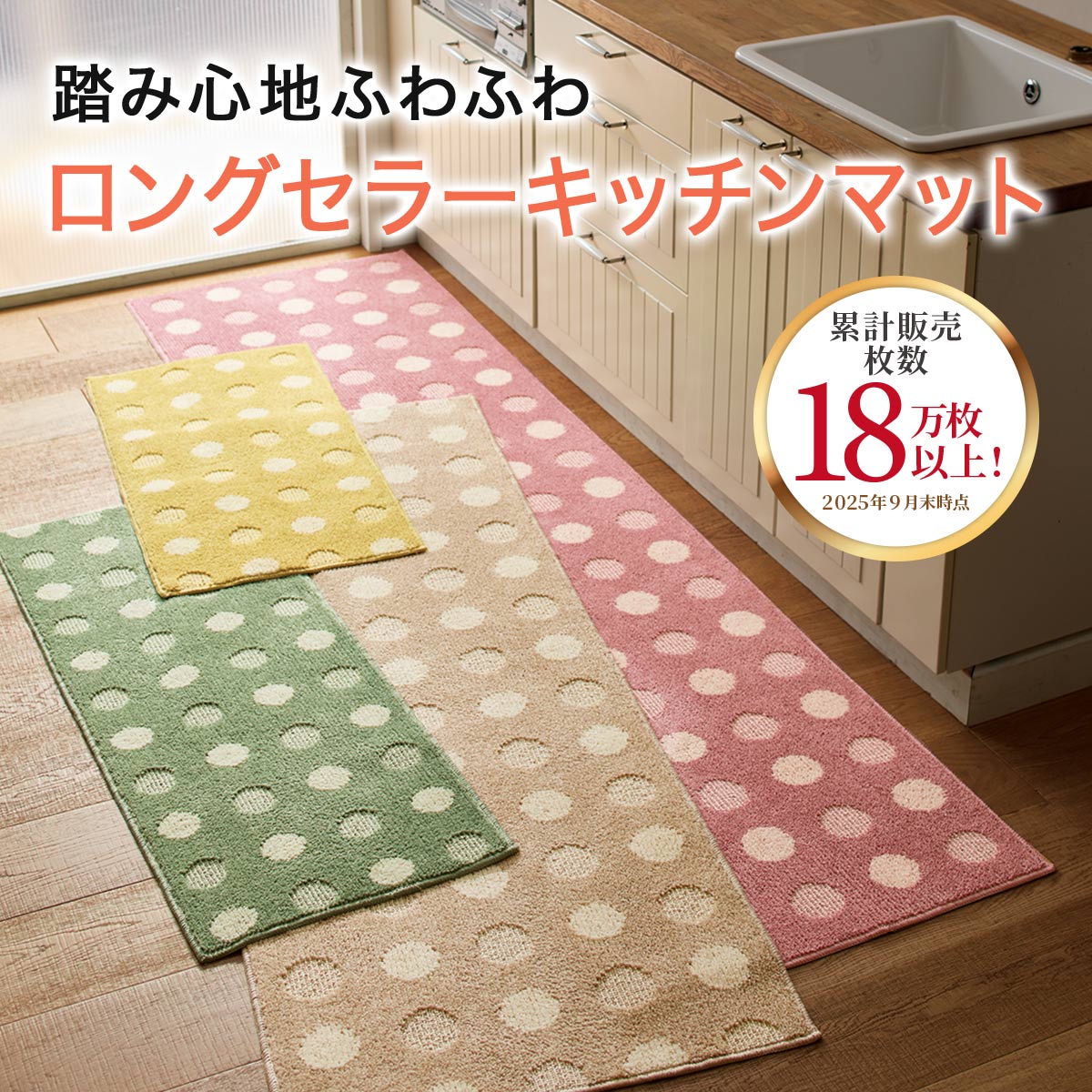 空間のアクセントとしても可愛いシンプルなドット柄のキッチンマットです。幅も長さも選べるから、キッチンだけでなくさまざまな場所にぴったりのサイズが見つかります。
