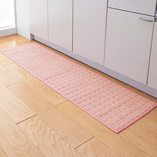 ソフトピンクキッチンにすっきりと敷ける、ちょうどいい幅45cmサイズ。