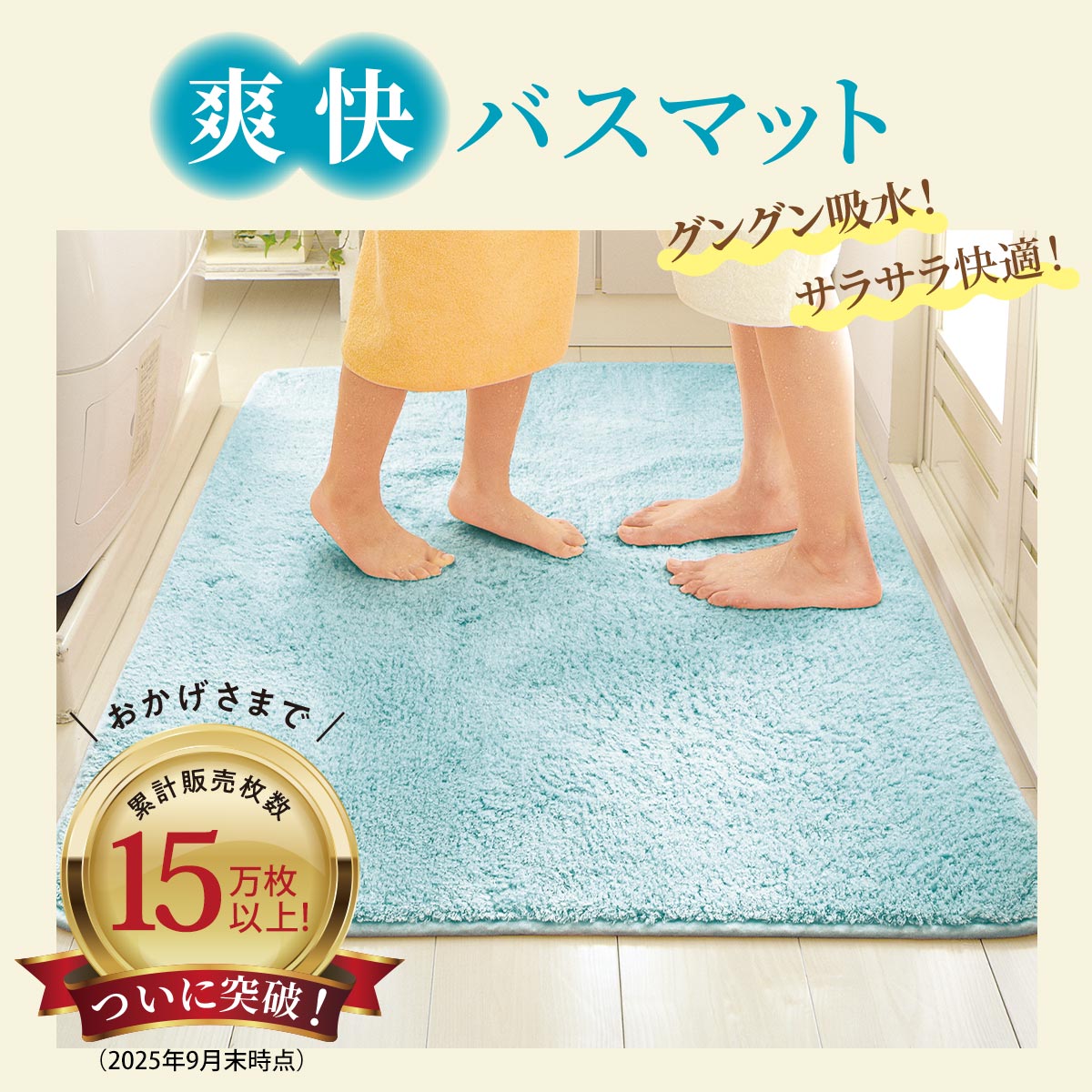 累計販売枚数15万枚以上!(2025年9月末時点)吸水速乾繊維「コスモトロン®」を使用したセシールのロングセラーバスマット!