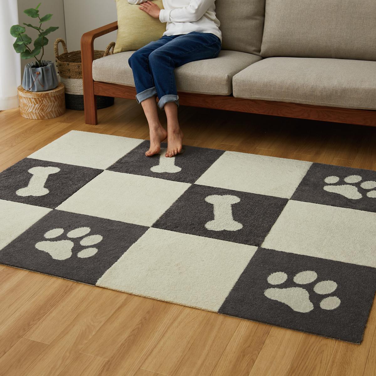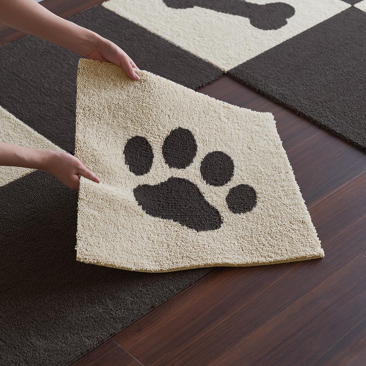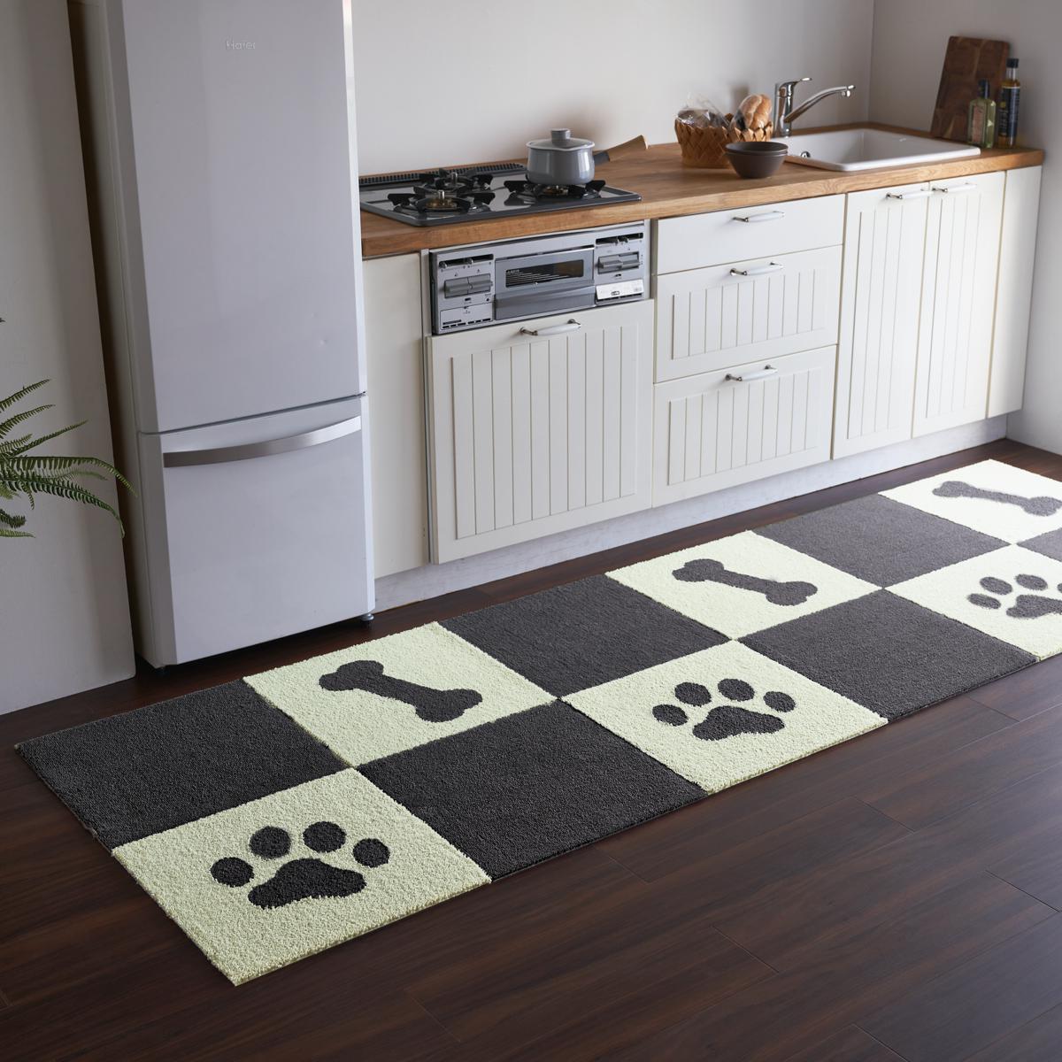 タイルカーペット感覚で組合せて敷けるキッチンマットです。色もサイズも自在なのでキッチンだけでなくリビングや玄関にもおすすめです。かわいい犬モチーフのデザインに癒される♪