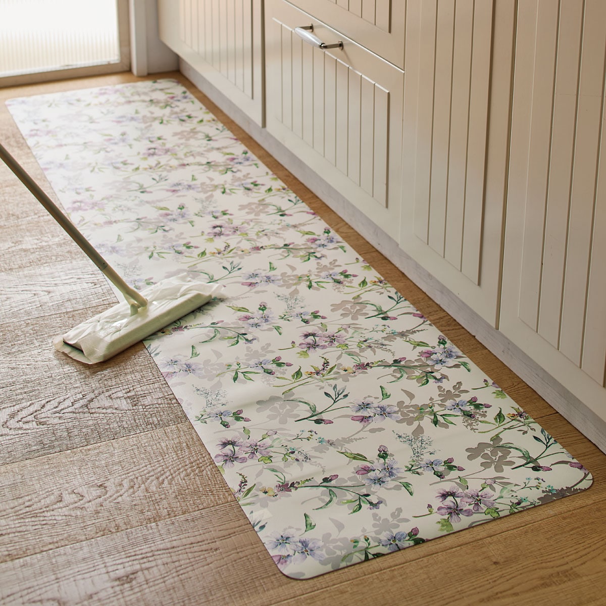 A (フラワー) 横180×縦45cm お手入れ簡単なPVCクリアキッチンマットです。