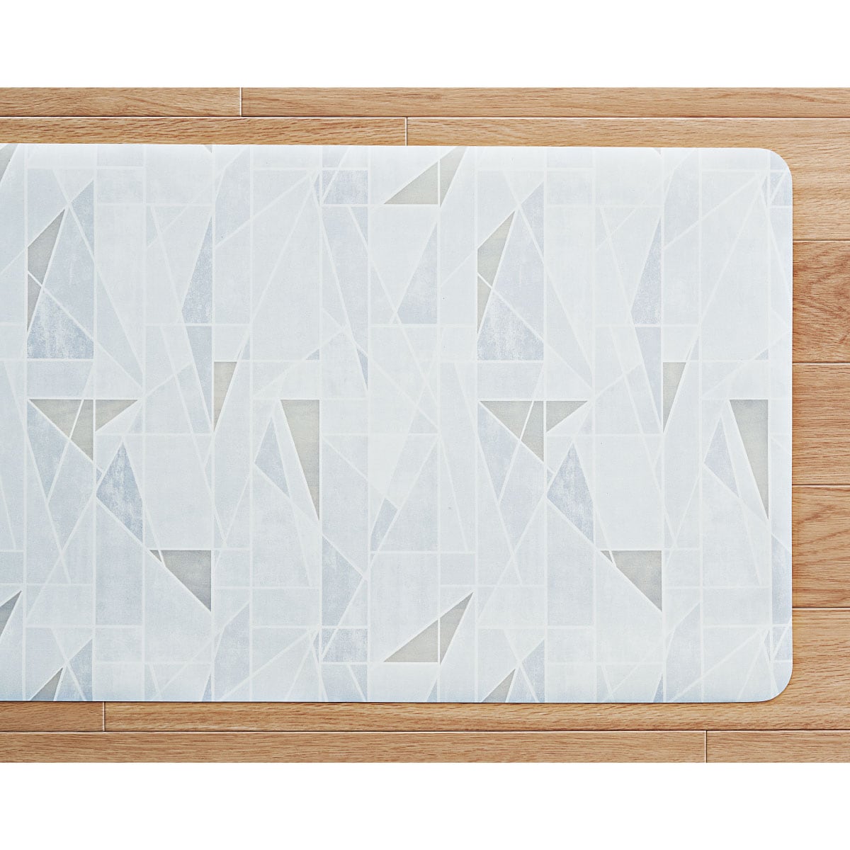 サッと拭くだけ簡単お手入れのPVCクリアキッチンマットです。アルコール除菌剤が使用出来るので、お洗濯なしでいつでも清潔さを保てます。防炎効果・床傷防止・滑りにくい・床暖房OKの多機能設計でいつも安心!厚さ1mmと薄手でつまずきにくいのもうれしいポイント。プリントの一部が透けているので床色がほどよく浮かび上がり、お部屋に自然に馴染みます。