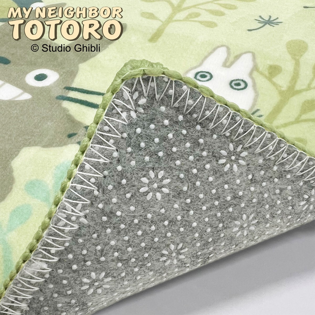 なめらかな毛足が気持ちいい、優しい表情のトトロに癒されるキッチンマットです。優しいグリーンの色合いがキッチンをパッと華やかに演出します。汚れたら洗濯機で丸洗いできるので、お手入れ簡単! 裏面はすべりにくい加工でズレにくく、掃除機もスムーズ。