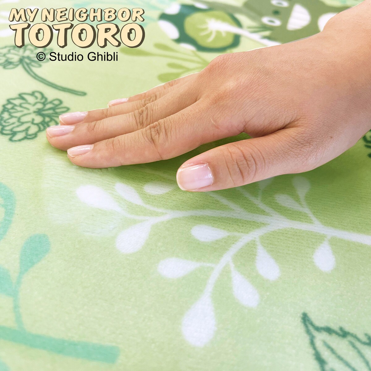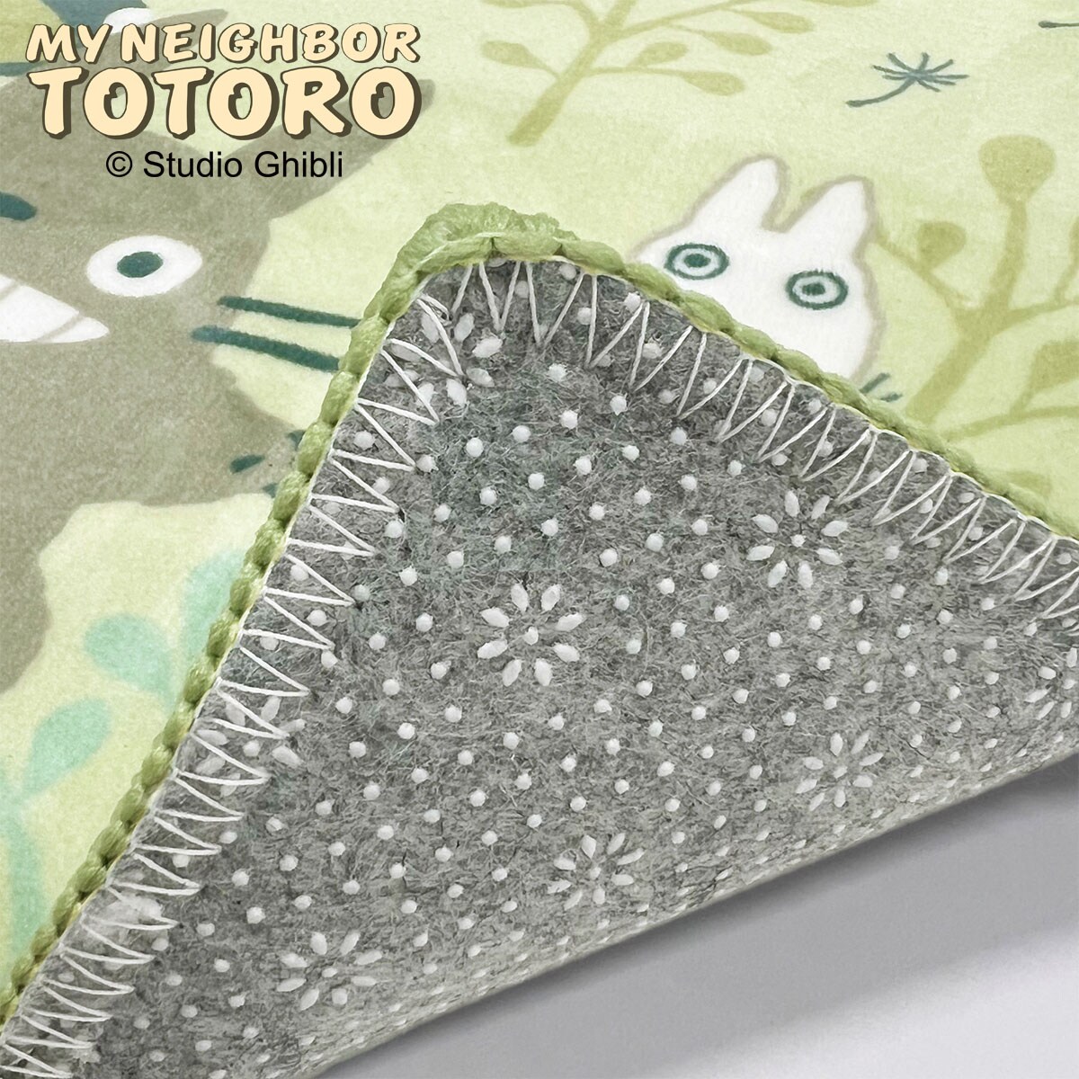 なめらかな毛足が気持ちいい、優しい表情のトトロに癒されるキッチンマットです。優しいグリーンの色合いがキッチンをパッと華やかに演出します。汚れたら洗濯機で丸洗いできるので、お手入れ簡単! 裏面はすべりにくい加工でズレにくく、掃除機もスムーズ。