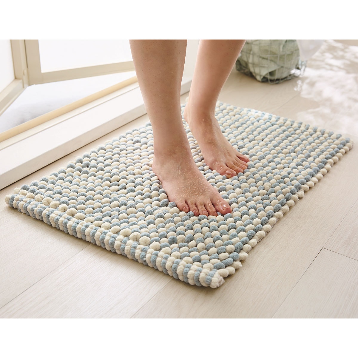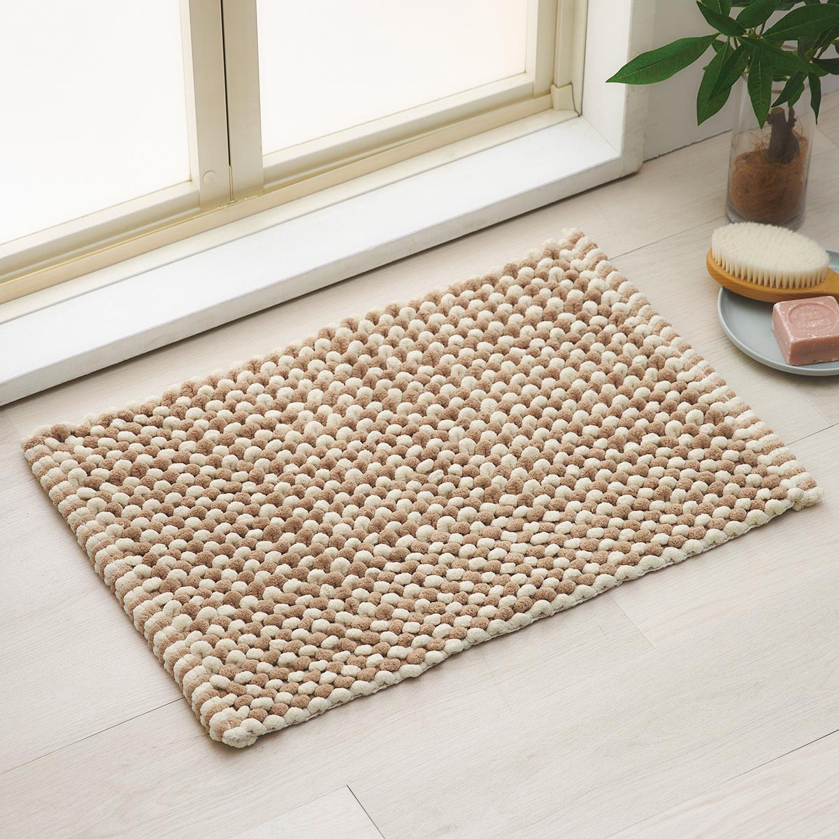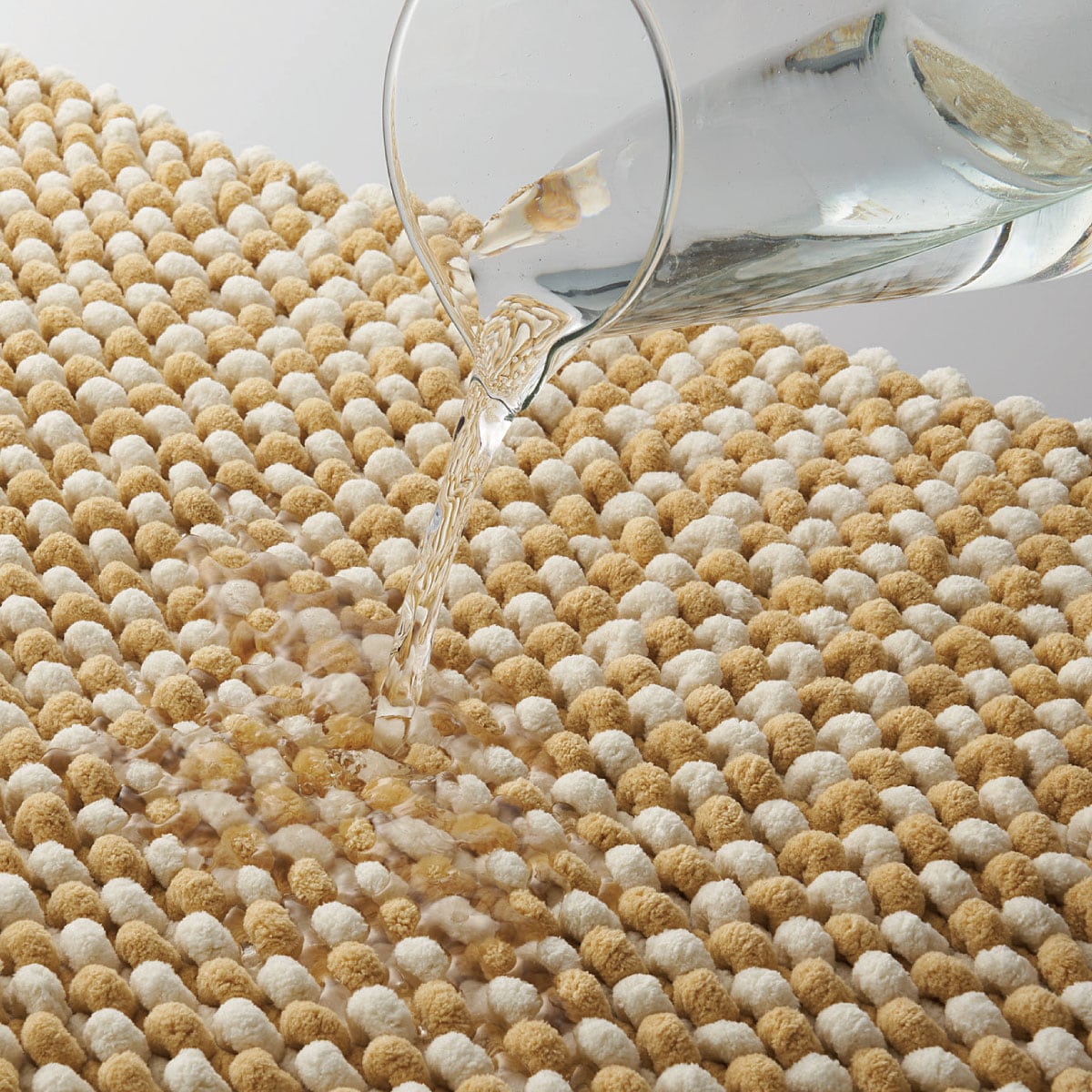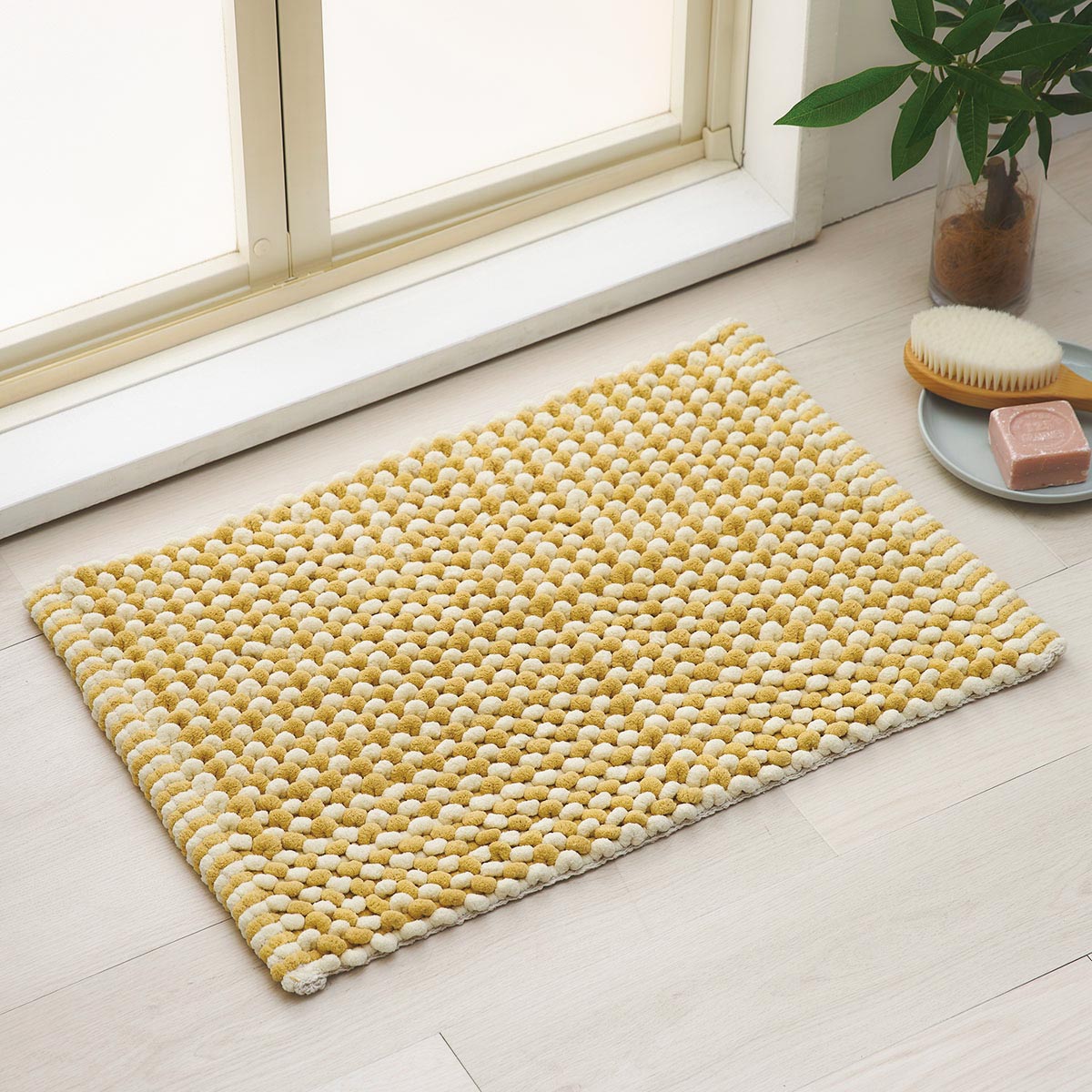 ペットボトル約6.6本分の驚きの吸水力!もこもこパイルが素足に気持ちいい、手織りのバスマットです。しっかりとしたボリュームで、気持ちのいい踏み心地♪