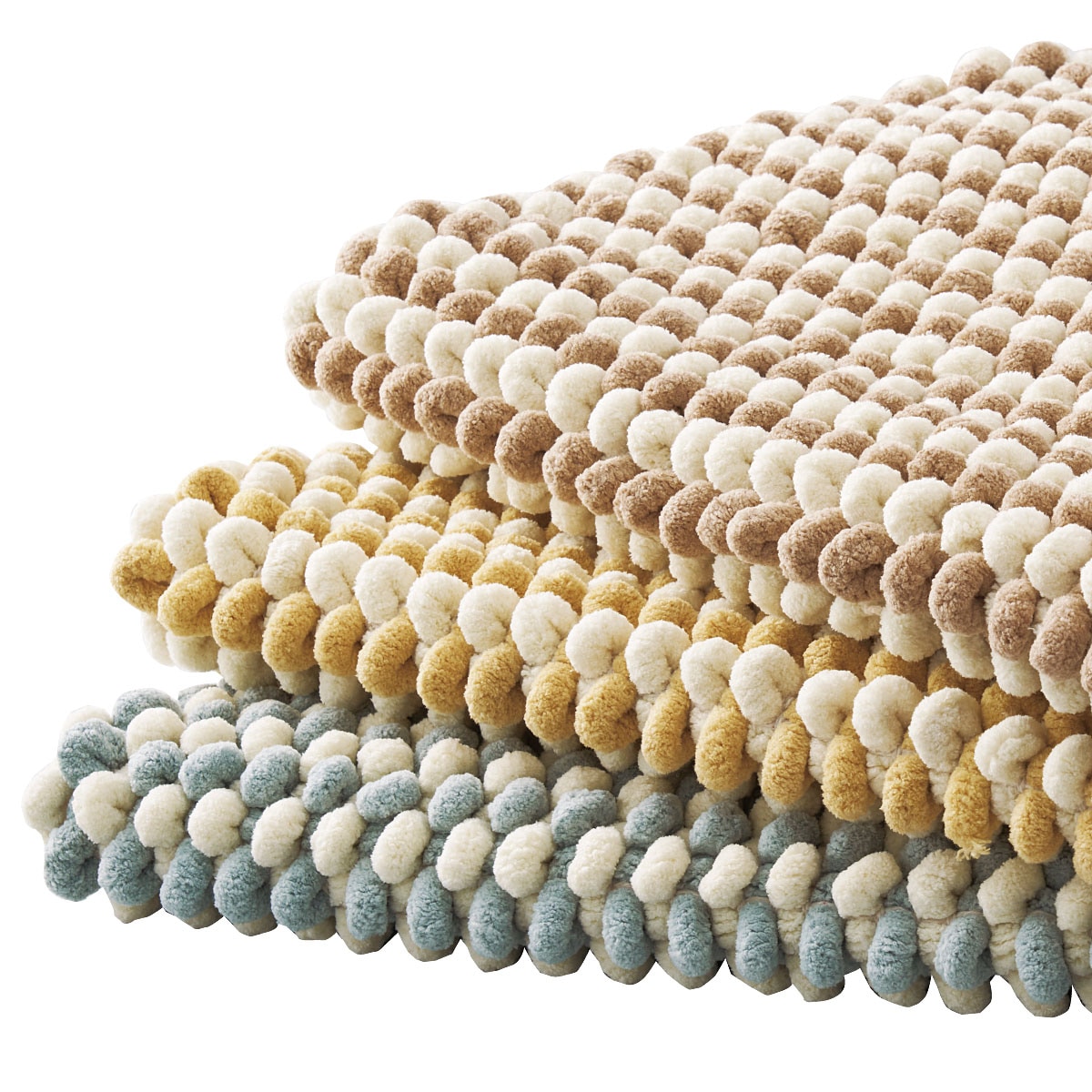 一枚ずつ丁寧に織り上げた、手織りで素足に気持ちいい感触のもこもこパイルのバスマットです。基布部分には吸水力に優れたインド綿とマイクロファイバーを使用しているので、お風呂上がりの水分をたっぷり吸収します。洗面台前などにもおすすめの爽やかな3色展開です。