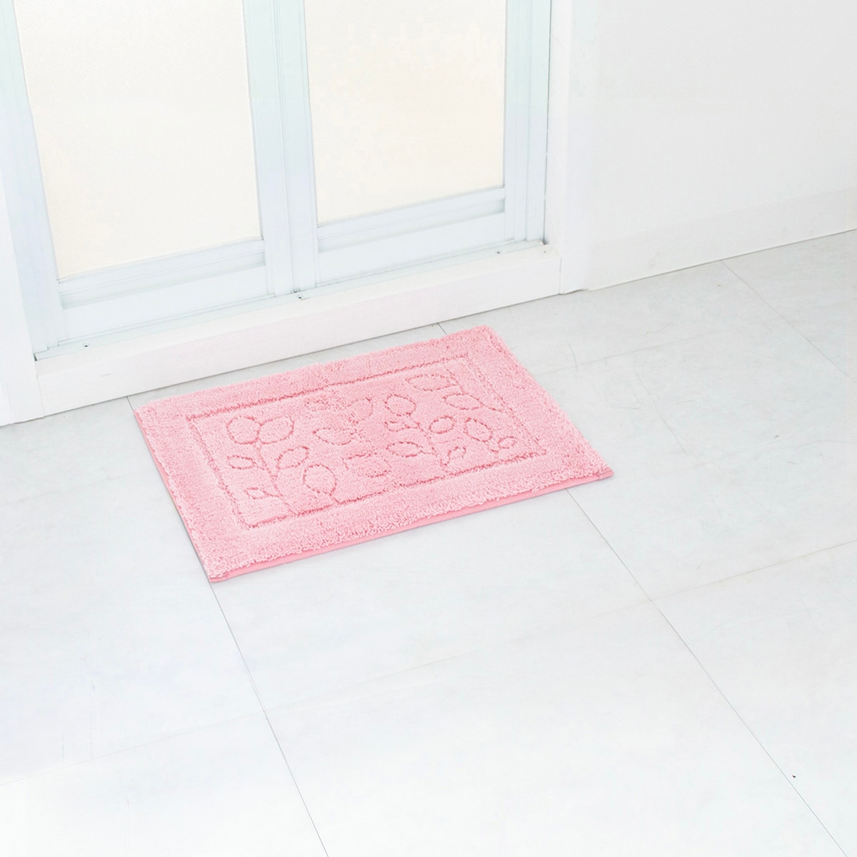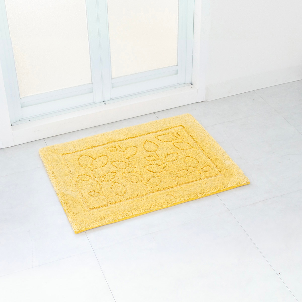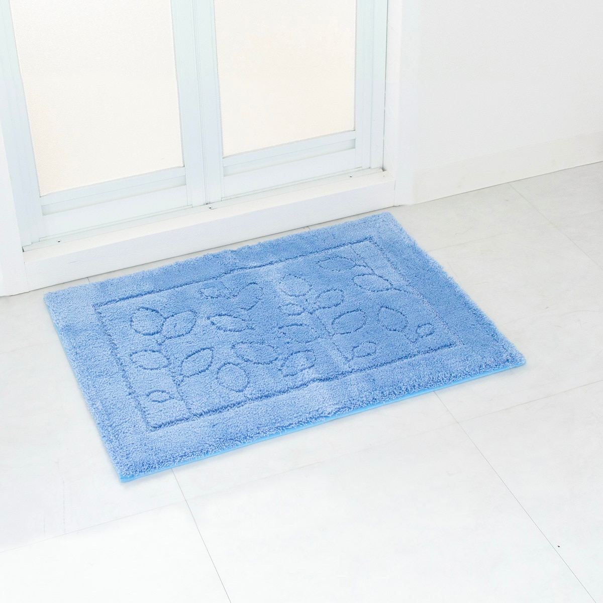 びしょびしょバスマットはさようなら! 繊維1本1本に無数の細かな穴を設けた特殊構造繊維「乾度良好®」の糸を使用したバスマットです。水分をスッと吸収し、カラッと拡散するので次の人が足をのせても冷たくありません。乾きが速いのでお洗濯の時短にも。さらに抗菌・防臭機能付きでイヤなニオイのもととなる繊維上の細菌の増殖を抑制し、いつも清潔を保てます。シンプルなリーフデザインと明るいカラーがバスルームを爽やかで清涼感のある空間に。