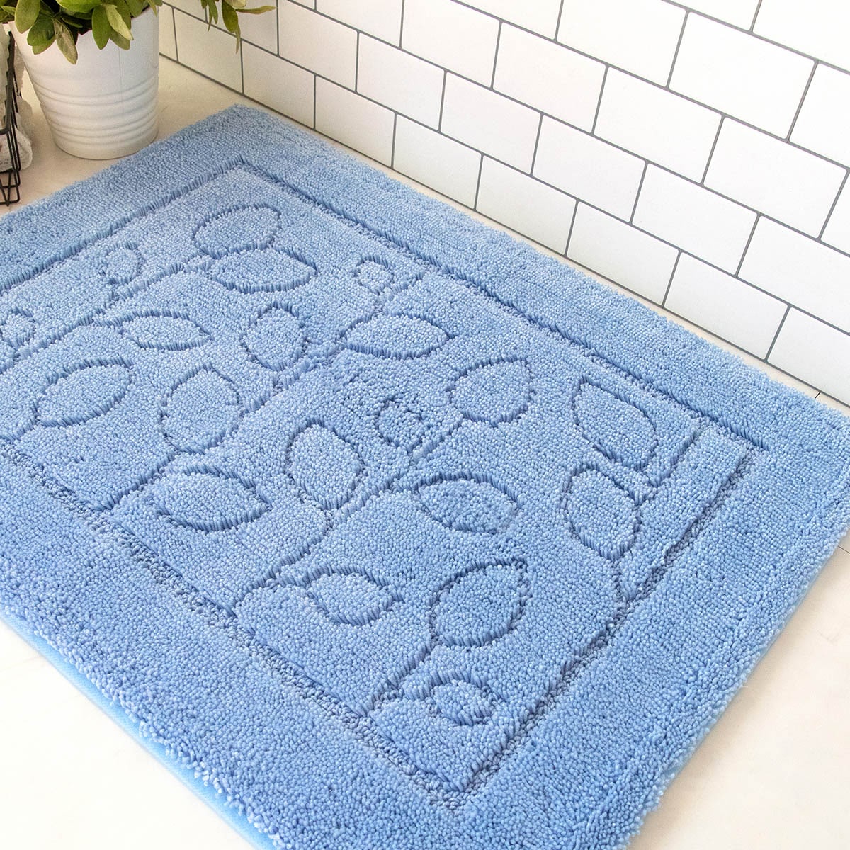 ブルーシンプルなリーフデザインがバスルームのアクセントに。