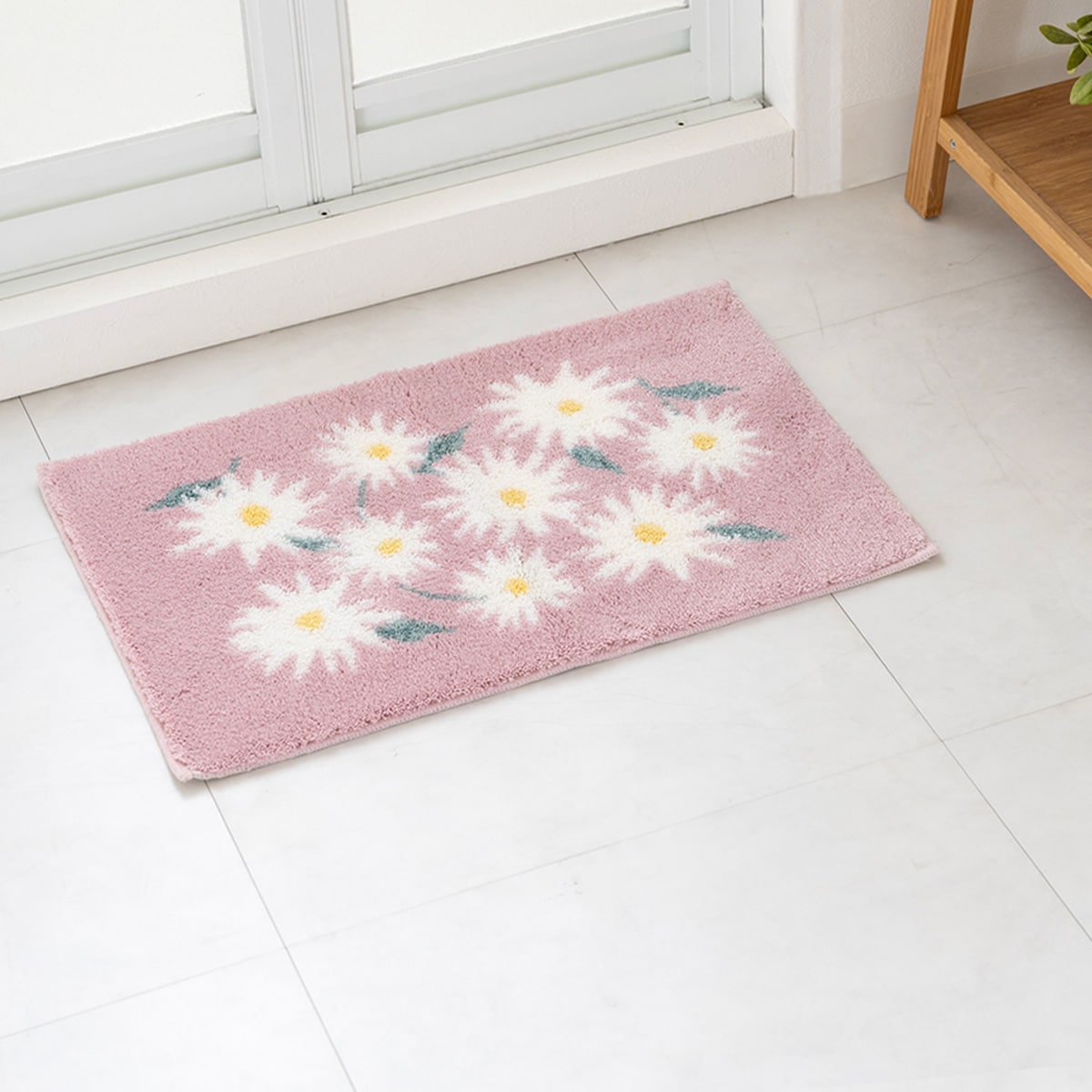 ピンク(横60×縦45cm)明るくかわいいデイジー柄でバスルームが華やかに。