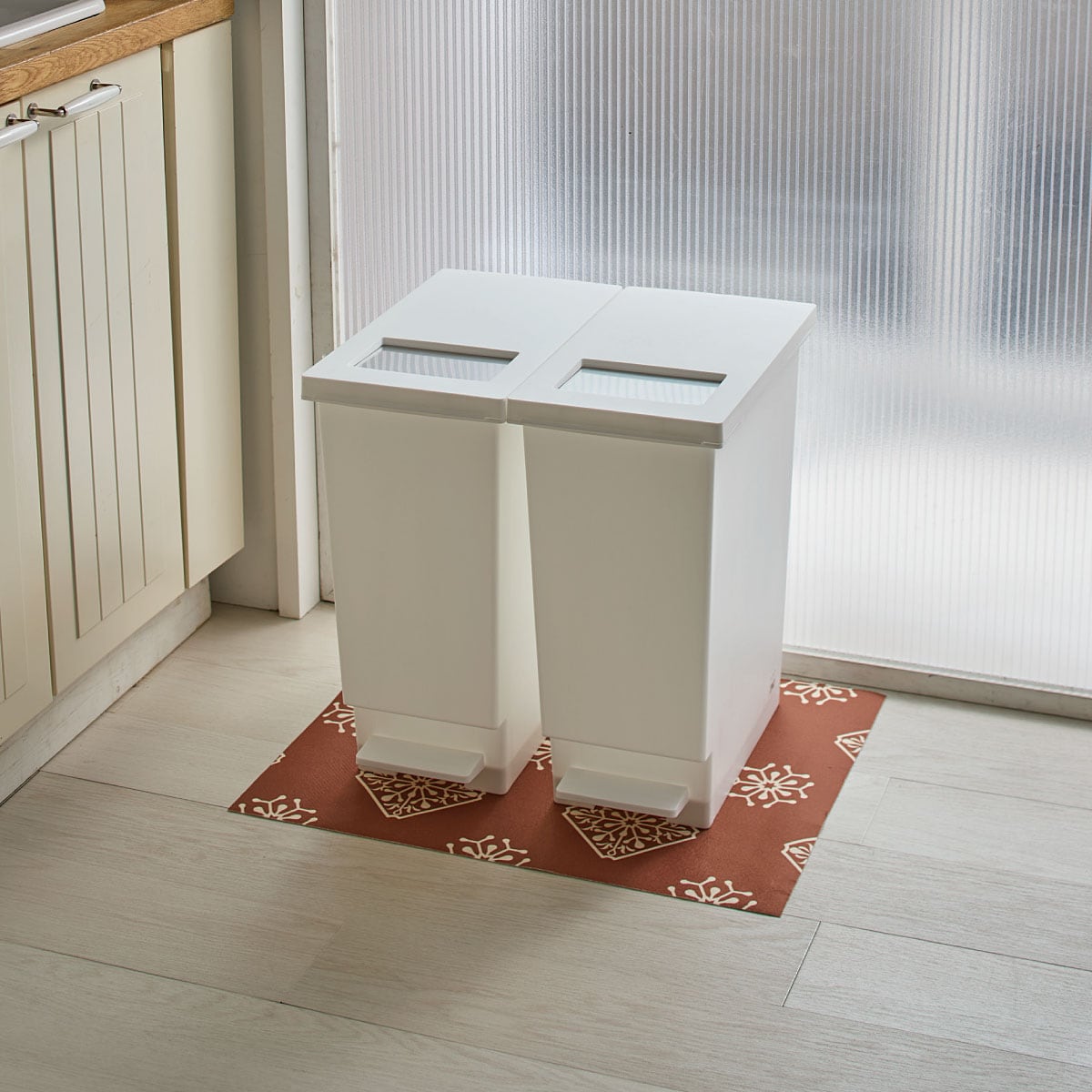 ブラウンゴミ箱の下に。