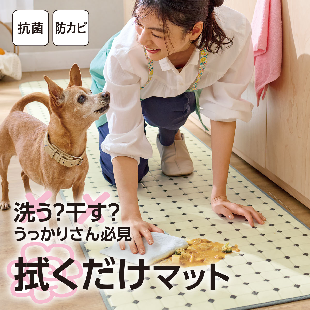 またやっちゃった~最悪…そんなときもキッチンマットを敷いておけばお掃除がラク!