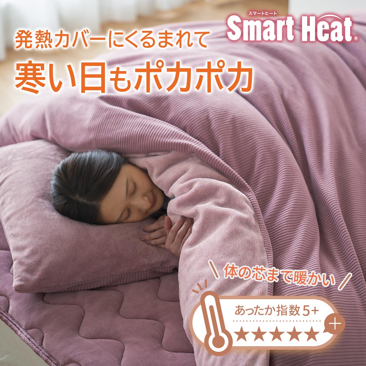 肌側のグランド部分に、体から出る汗などの水分を吸収して熱へと変える吸湿発熱素材「スマートヒート®」を使用した掛け布団カバーです。直接肌に触れる面は毛布仕上げで、とろけるような暖かさに。なめらかな毛足が発熱したぬくもりをしっかりキープし、冷たい外気からも守ってくれます。表面は軽くてあたたかなフリース素材で、頬ずりしたくなるようなやさしい肌ざわりに仕上げました。ズレ防止のひも・ホックと両開きファスナーで着脱も簡単。汚れたらご家庭の洗濯機で気軽に洗えます。