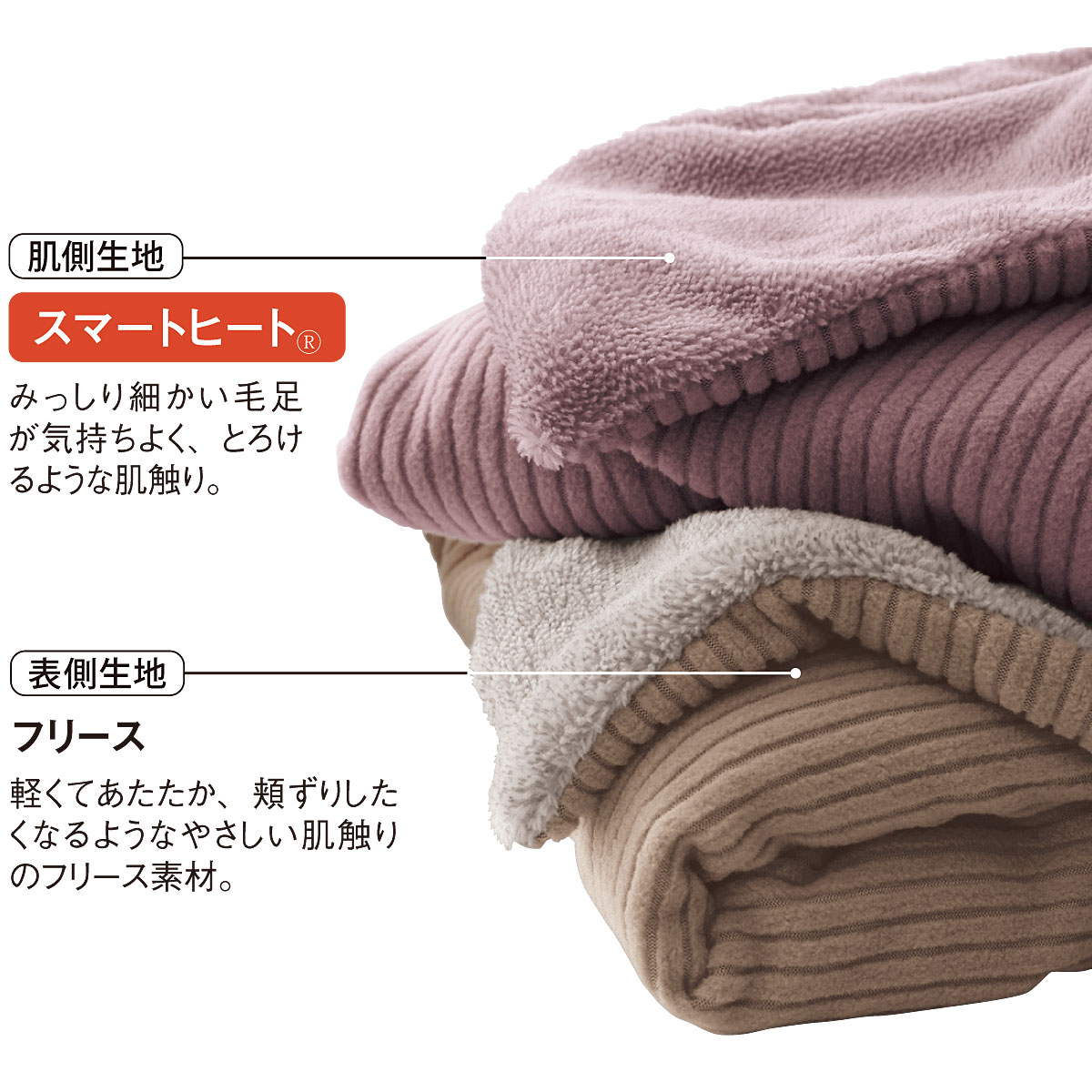 肌側は「スマートヒート®」毛布生地、表側はフリース素材を使用。