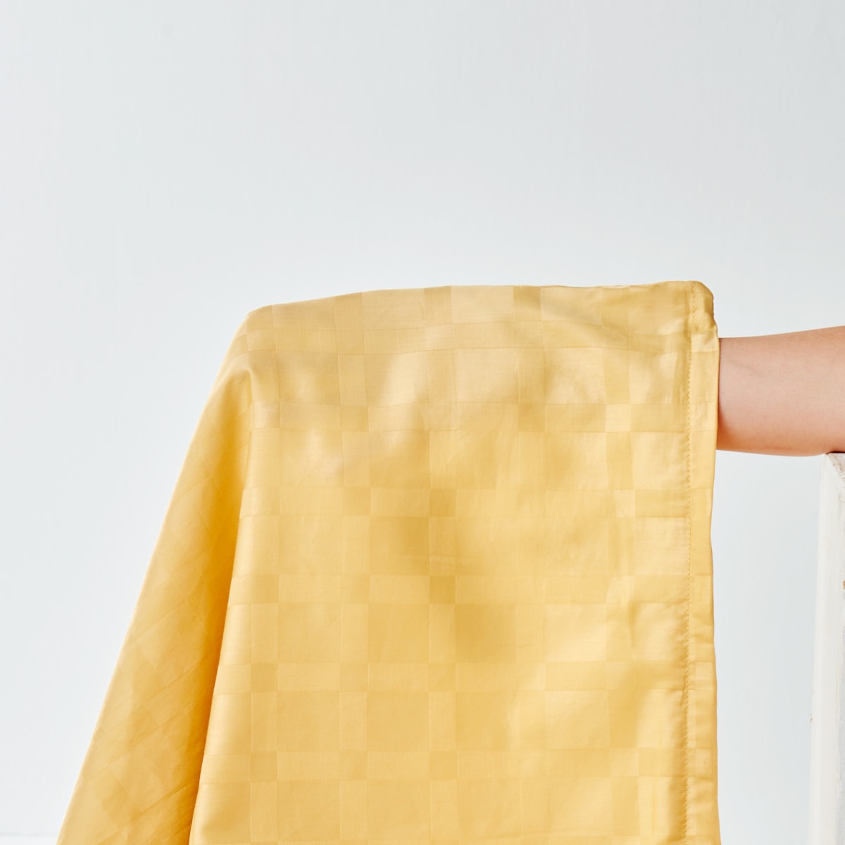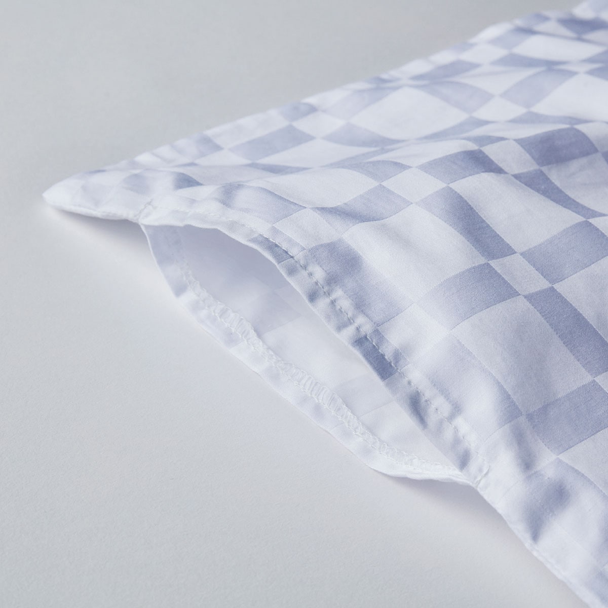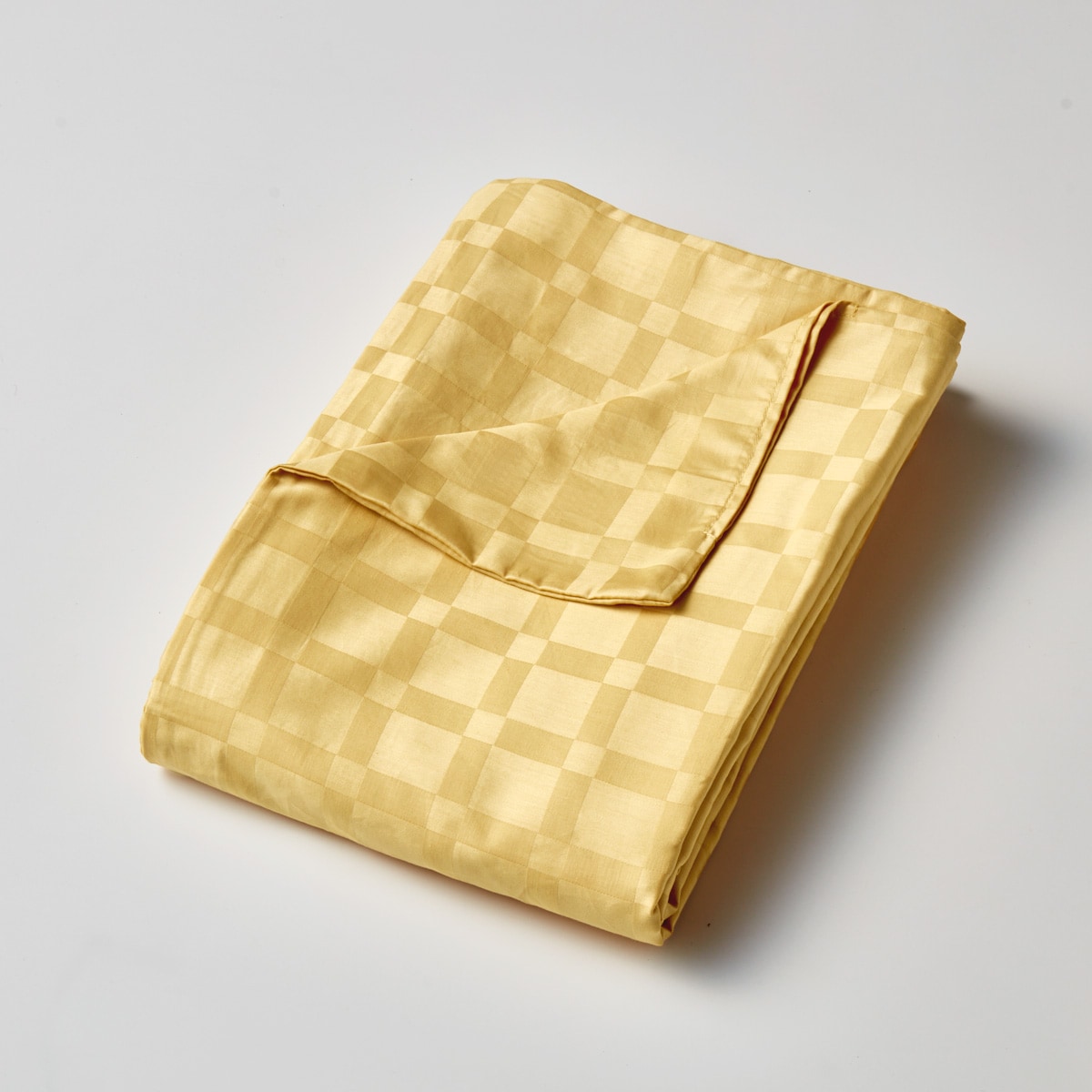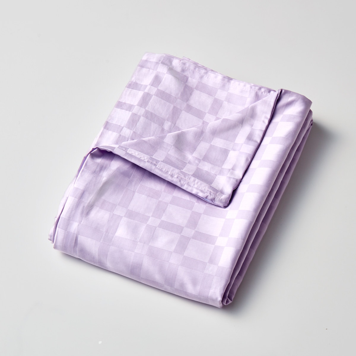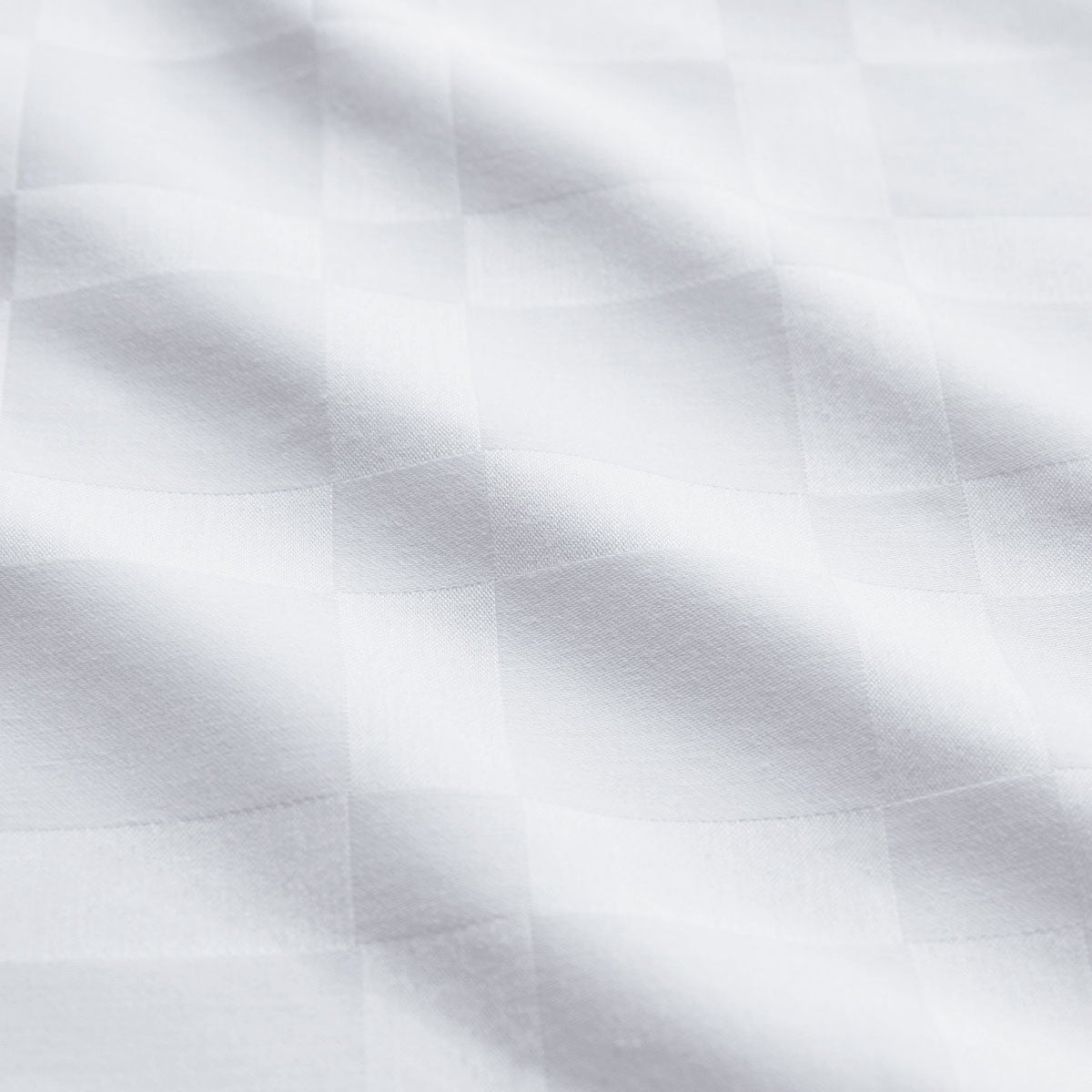 使用したのは、細めの綿糸を高密度に打ち込んだサテン織りの生地。100%コットンならではのやわらかな肌ざわりが心地いい、ホテル品質の掛け布団カバーです。光が交差する格調高い格子柄をご用意しました。内側に取り付けた8ケ所止めで掛け布団とカバーをしっかり固定。大きく開く両開きのファスナーで開閉も着脱もスムーズ。ご家庭の洗濯機で気軽に洗えます。絹のように艶やかな光沢と、なめらかな感触がもたらすワンランク上のくつろぎを楽しんで。