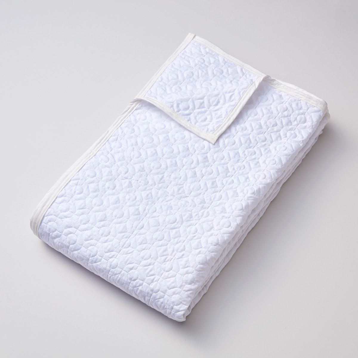 プラスするだけで寝室の雰囲気が変わるベッドスプレッド。忙しいときにも、掛け布団の上にサッと掛けるだけで、まるで高級ホテルのような雰囲気を醸し出します。使用したのは、細めの綿糸を高密度に打ち込んだサテン織りの生地。100%コットンならではのやわらかな肌ざわりです。デザインキルトを施してあるので上品な印象に。マルチカバーとしてソファなどにかけて使うのもおすすめ。ネットを使用すれば洗濯機で気軽に洗えます。なめらかな感触がもたらすワンランク上のくつろぎを楽しんで。