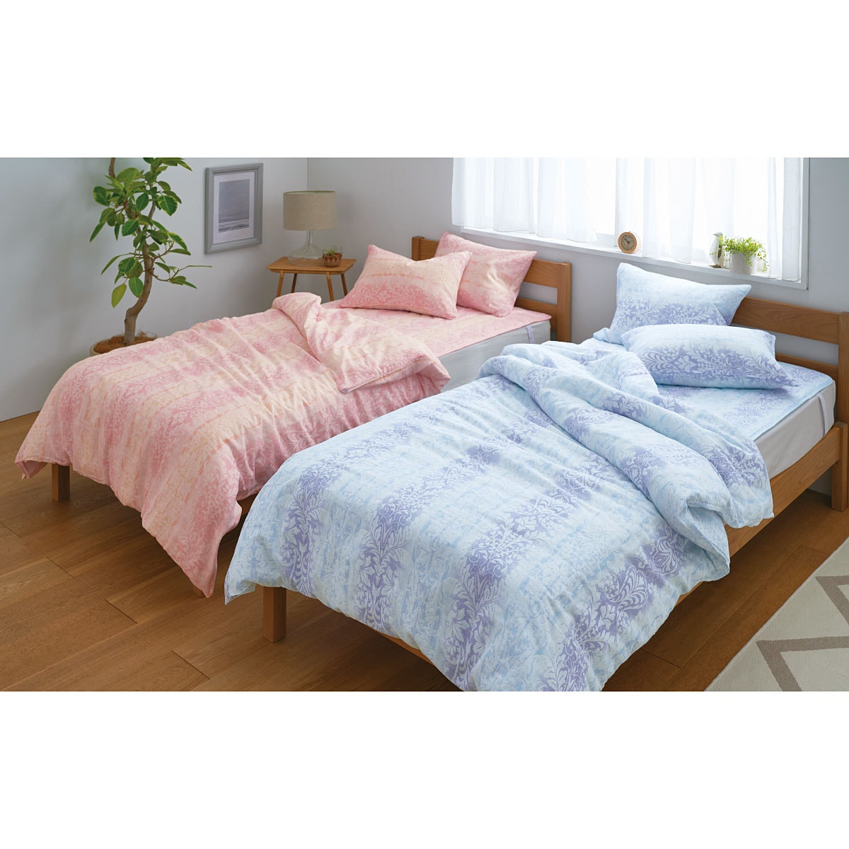 (左から)ピンク・サックス ※商品は枕カバーです。※掛け布団カバーはCR-1246、パッドシーツはCZ-1037を使用しています。