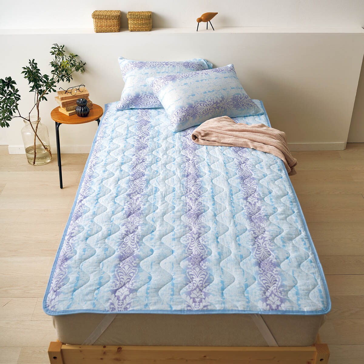 軽やかですーっと風を通す、ダブルガーゼの枕カバーです。汗をかいてもベタつかず気持ちのいい肌ざわり。やさしい色合いに心落ち着くダマスク柄も魅力です。